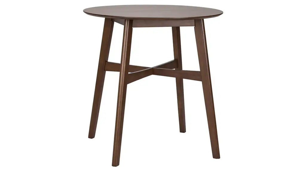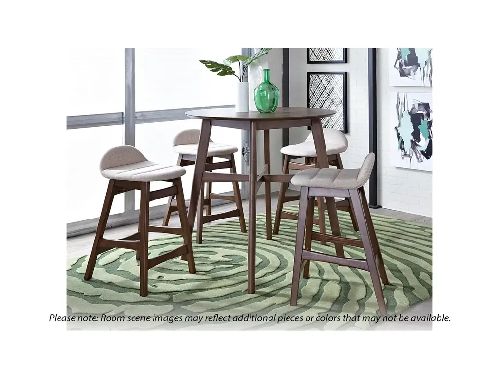 Mid-century modern style is defined by the clean lines of the Liberty Furniture Space Savers High Top Table. This round counter height dining table is finished in walnut brown and pairs perfectly with stools.