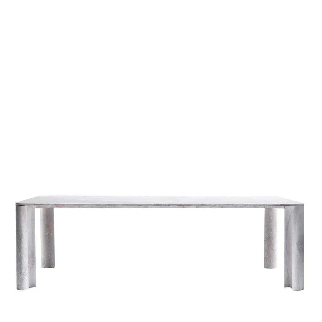 The dining table Specchio di Venere epitomizes elegance with its top adorned by rounded edges, reminiscent of the captivating hues and contours of the renowned lake nestled within a volcanic crater on the island of Pantelleria.