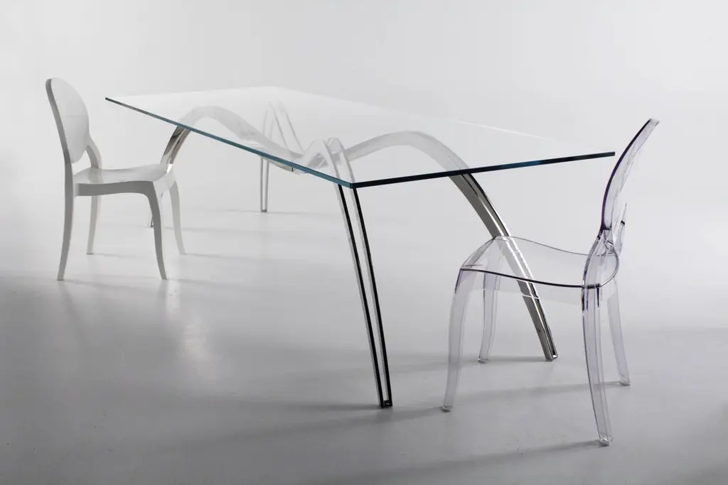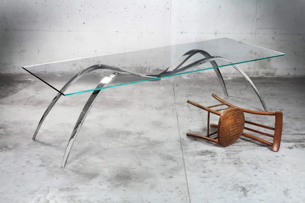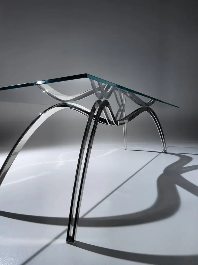 Spider Classic Small Dining Table in Glass & Steel by Barberini & GunnellLimited Edition of 15 + 2 AP + 1 PDimensions: D 90 x W 190 x H 76 cm.Materials: Tempered extra-clear crystal glass and mirror-polished stainless steel.The artwork 'Spider' in the dining table version was chosen by Maestro Andrea Bocelli and his wife Veronica.A small black spider walks slowly and tiredly on an endless strip of dark wood.Suddenly it stops, motionless, as if to rest; it is illuminated by a cold, alien light, which projects its monstrous and paradoxically magnified shadow on the surface of the work table.The fascinating projection of the spider's shadow becomes the soul of the project.It starts from a shadow, elusive and without a body, to arrive at the zoomorphic structure of the table.The shadow, always a slave to the body that projects it, becomes the undisputed master and creator of the latter.Limited Edition, signed and numbered by the artists, comes with a Certificate of Authenticity.Barberini & Gunnell, founded in 2009 in Ancona, Italy by architects Francesco Barberini and Nina A. Gunnell, is the result of a philosophy, thinking of design and architecture as a work of art. The architectural and interior design activity carried out by ‘The Studio’ complements the creations of ‘The Atelier’, which are the result of an artistic playground and highly skilled craftsmanship, a place where artworks and sculptures come to life.The Studio Barberini & Gunnell designs high-end residential and retail spaces that are out of the ordinary and beyond fashion. Barberini & Gunnell creates refined, timeless, and harmonious environments by inserting collectible design, “talking pieces” that create unique and bespoke homes according to the client’s eclectic and aesthetic desires.The Atelier Barberini & Gunnell creates artworks and collectible designs, one-off pieces, and limited editions for a small niche of high-end projects; bespoke solutions for luxury and ultra-luxury projects all over the world.The choice of the most precious materials, the maniacal cure for detail is the basis of our modus operandi aiming to create timeless pieces, using marine grade stainless steel, brass, cast bronze, precious wood essences, marbles, onyxes, semi-precious gemstones, crystal glass, together with the most sophisticated technologies and quality craftsmanship.This allows us to work for clients like Four Seasons Hotels, The Ritz Carlton, Regent Seven Seas Cruises, Louis Vuitton, Cartier, Dior, Paramount Pictures, Peter Marino Architects, Sotheby’s, Bonhams, Foundation of Maestro Andrea Bocelli, Ridley Scott (House of Gucci) besides our private collectors and clients.Values such as sustainability, the use of natural materials, the rediscovery of eco-sustainable craftsmanship, and the protection of refined and ancient techniques that are increasingly being lost are the basis of the design.Barberini & Gunnell’s signature works are exhibited at international art fairs such as Art Basel Design//Miami, Art Miami, Art Basel Switzerland, PAD London, PAD Genève, PAD Paris, PAD Monaco, Salon Art+Design New York…