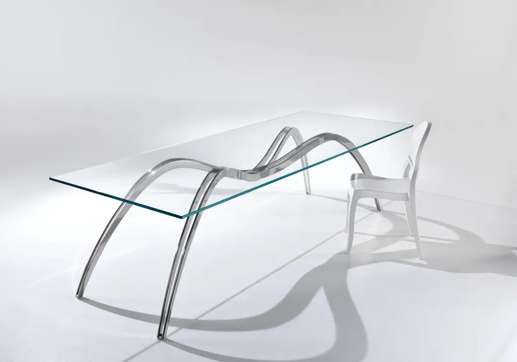 Spider Skeleton Dining Table by Barberini & GunnellLimited Edition of 15Dimensions: D 100 x W 270 x H 76 cm.Materials: Tempered extra-clear crystal glass, mirror-polished stainless steel.A little black spider is crawling slowly and tired on an endless road of dark wood.All of a sudden it holds motionless as if to rest;there is a cold and alien light shining on the little spider projecting its shadow, paradoxically gigantic and monstrous, onto the surface of the table.The fascinating projection of the spider’s shadow gave the inspiration for this table.We started off with a shadow, uncatchable and vanishing, in order to achieve the zoomorphic structure.The shadow, ever since slave to the body which it projects, becomes the unquestioned master and creator.Limited Edition, signed and numbered by the artists, comes with a Certificate of Authenticity.Barberini & Gunnell, founded in 2009 in Ancona, Italy by architects Francesco Barberini and Nina A. Gunnell, is the result of a philosophy, thinking of design and architecture as a work of art. The architectural and interior design activity carried out by ‘The Studio’ complements the creations of ‘The Atelier’, which are the result of an artistic playground and highly skilled craftsmanship, a place where artworks and sculptures come to life.The Studio Barberini & Gunnell designs high-end residential and retail spaces that are out of the ordinary and beyond fashion. Barberini & Gunnell creates refined, timeless, and harmonious environments by inserting collectible design, “talking pieces” that create unique and bespoke homes according to the client’s eclectic and aesthetic desires.The Atelier Barberini & Gunnell creates artworks and collectible designs, one-off pieces, and limited editions for a small niche of high-end projects; bespoke solutions for luxury and ultra-luxury projects all over the world.The choice of the most precious materials, the maniacal cure for detail is the basis of our modus operandi aiming to create timeless pieces, using marine grade stainless steel, brass, cast bronze, precious wood essences, marbles, onyxes, semi-precious gemstones, crystal glass, together with the most sophisticated technologies and quality craftsmanship.This allows us to work for clients like Four Seasons Hotels, The Ritz Carlton, Regent Seven Seas Cruises, Louis Vuitton, Cartier, Dior, Paramount Pictures, Peter Marino Architects, Sotheby’s, Bonhams, Foundation of Maestro Andrea Bocelli, Ridley Scott (House of Gucci) besides our private collectors and clients.Values such as sustainability, the use of natural materials, the rediscovery of eco-sustainable craftsmanship, and the protection of refined and ancient techniques that are increasingly being lost are the basis of the design.Barberini & Gunnell’s signature works are exhibited at international art fairs such as Art Basel Design//Miami, Art Miami, Art Basel Switzerland, PAD London, PAD Genève, PAD Paris, PAD Monaco, Salon Art+Design New York…