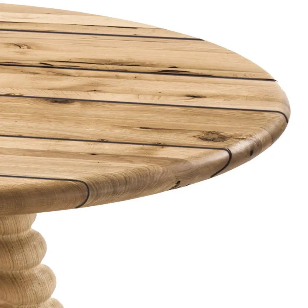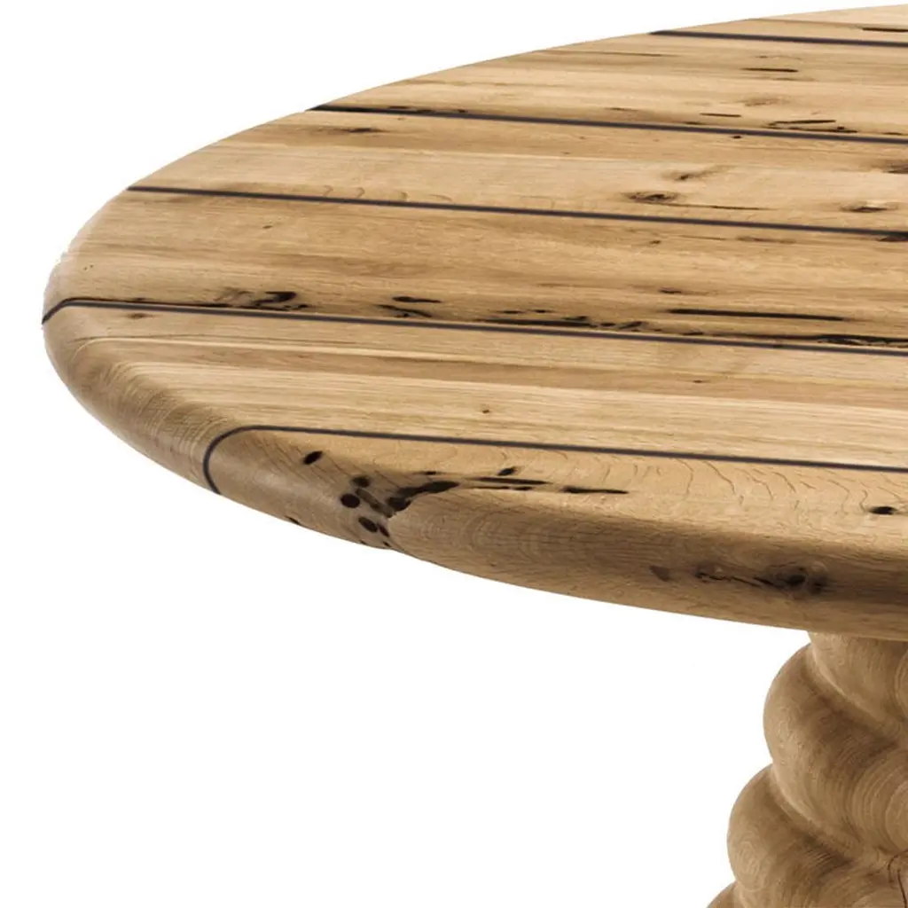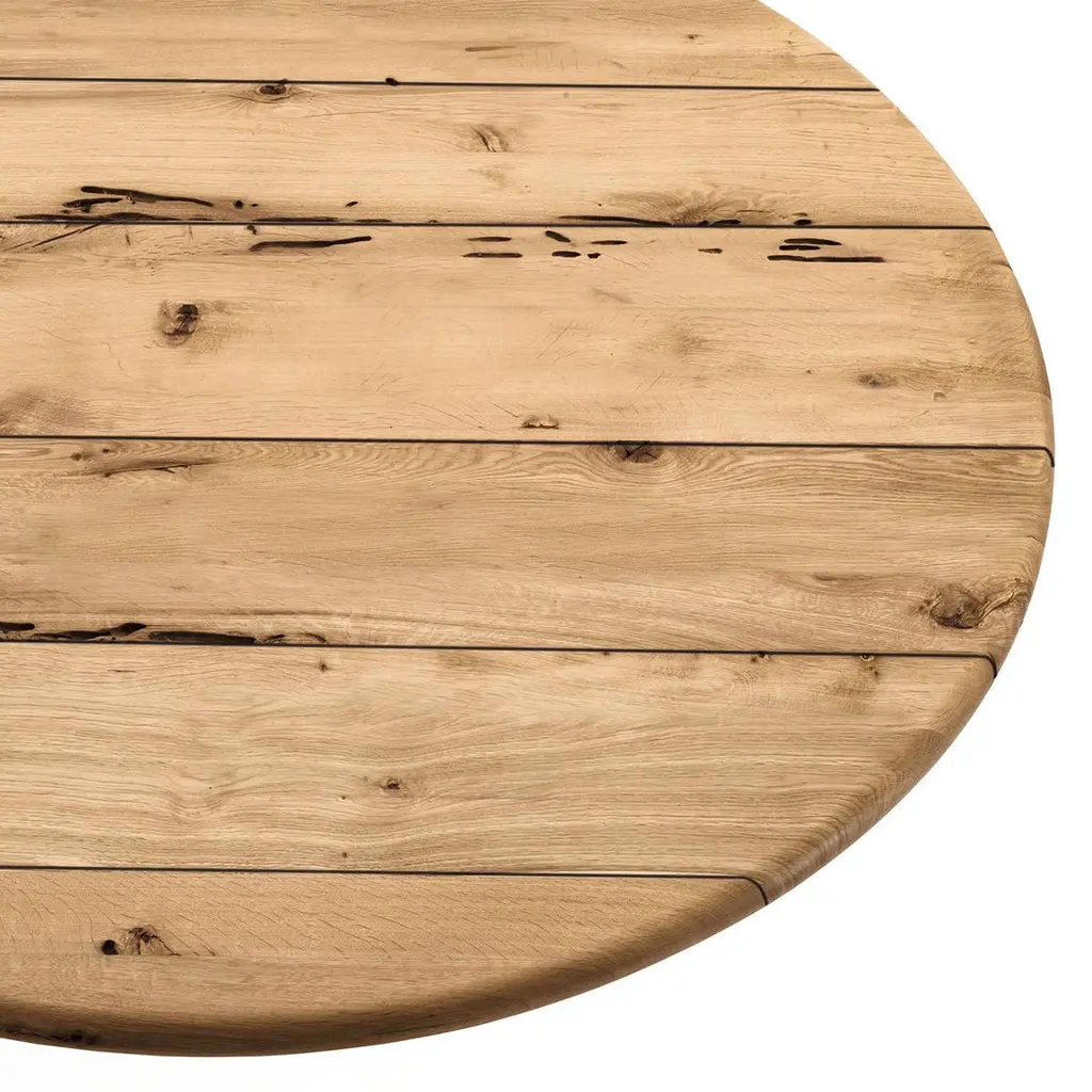 Dining table spirale with all structurein solid raw oak. Table top made with solidraw oak slats.Diameter 200xH75cm, price: 18900,00€.Also available in:Diameter 180xH75cm, price: 16900,00€.Diameter 160xH75cm, price: 14500,00€.