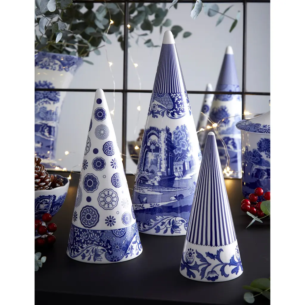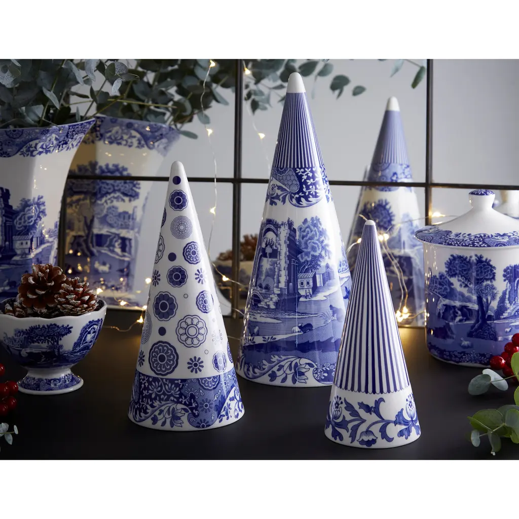 Spode Blue Italian Cone Shaped Topiary - 8"