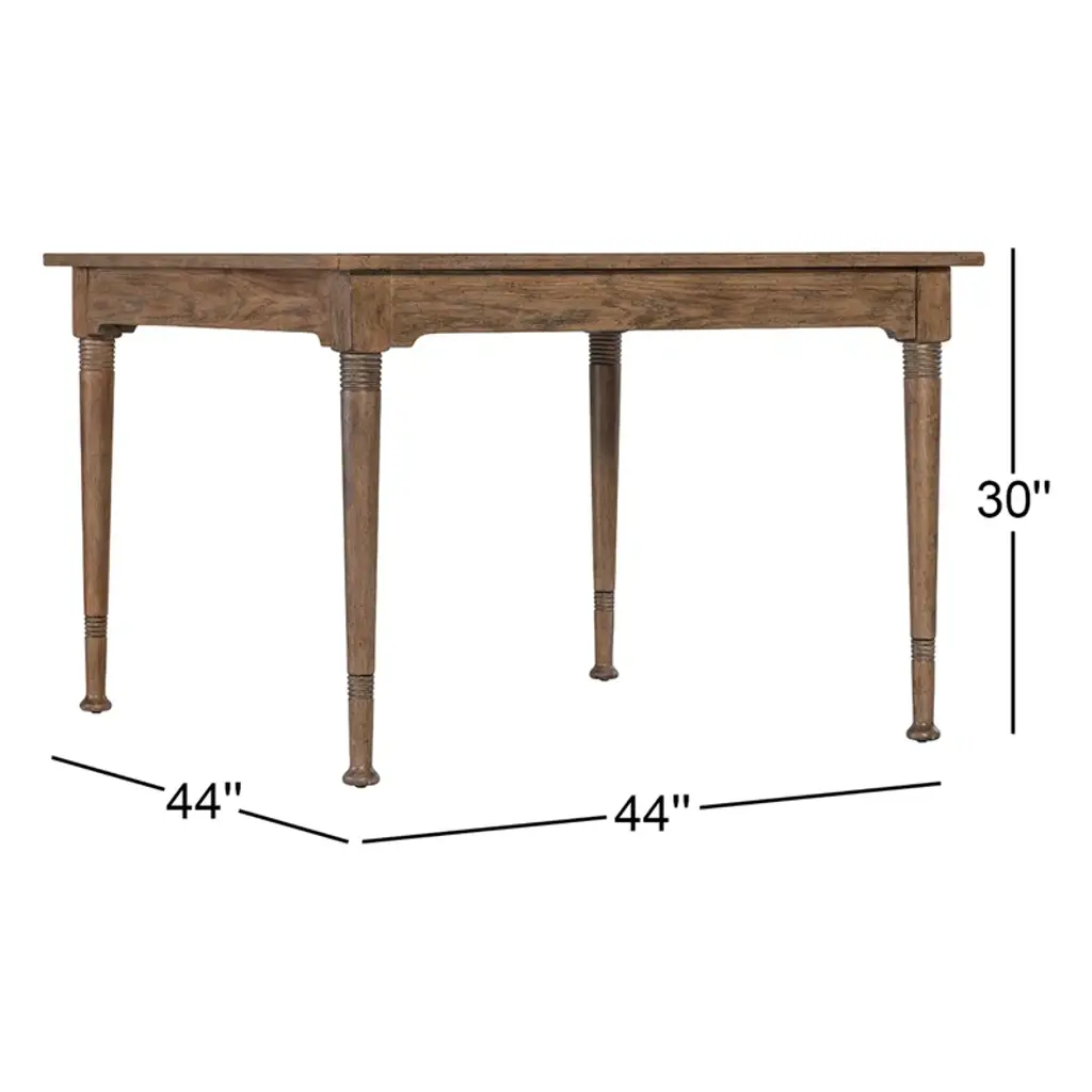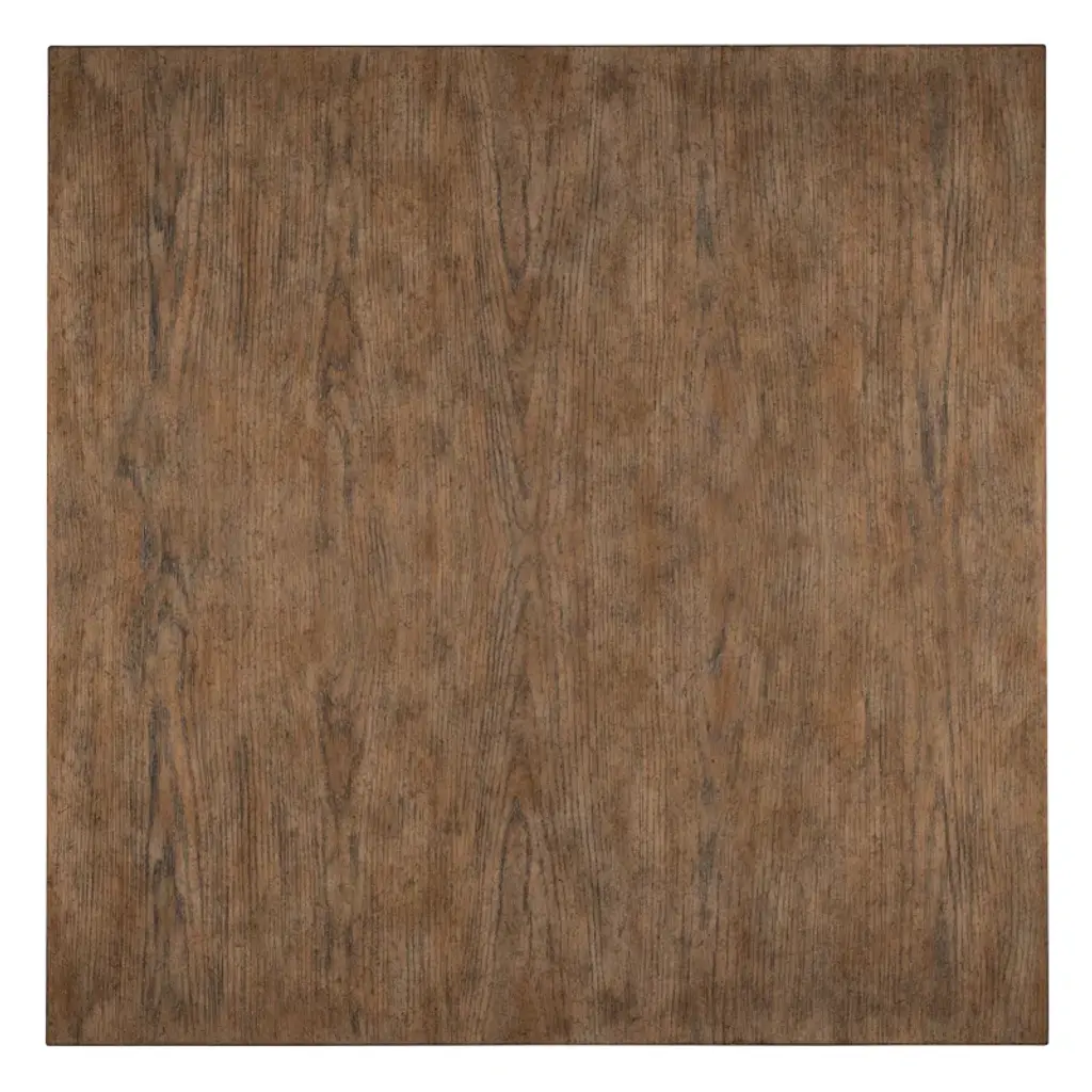 Celebrating the natural beauty of a simpler time, the inviting Alcy 44-inch square dining table is crafted of oak veneers with a solid-wood edge top and finished in gentle, warm brown honey. It features carved accents on the legs and distressing that hint at the passage of time, while the smooth surface invites you to run your fingers across it, connecting you with the generations who came before.