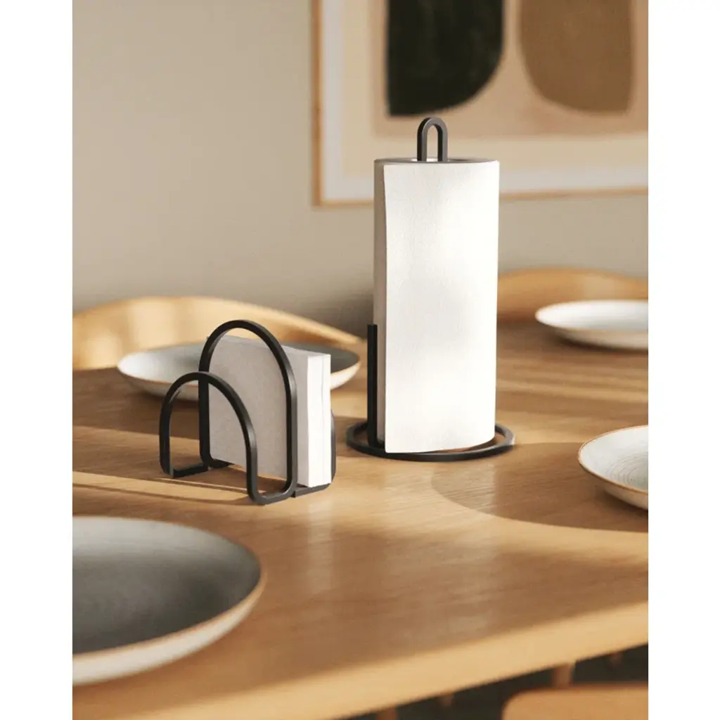 A sleek and modern addition to your dining table. This metal napkin holder keeps your napkins organized and within reach. Its minimalist design adds a touch of sophistication to any table setting. Napkins not included, but style definitely included.