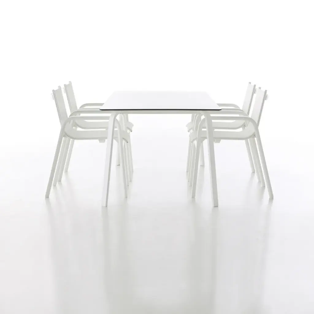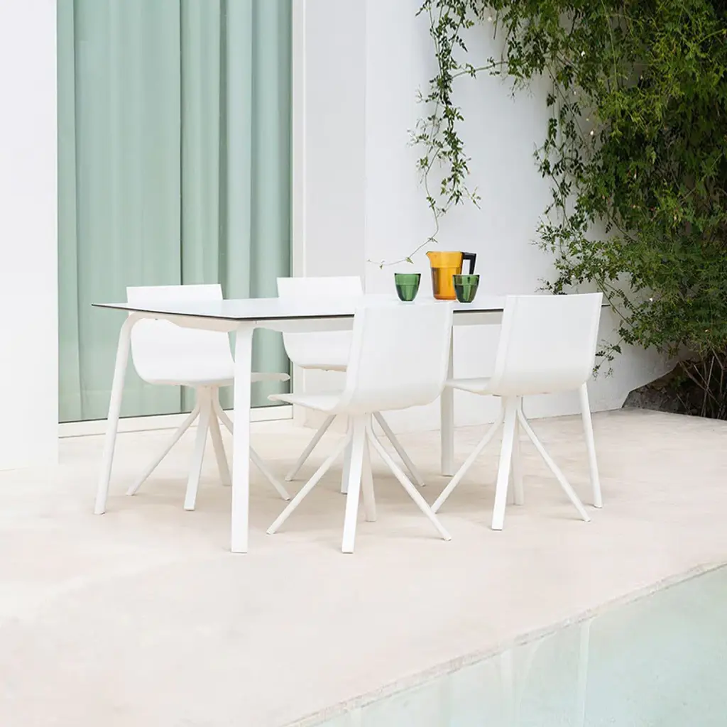 Inspired by the nautical world with design elements reminiscent of the 1960’s and 1970’s, the Stack Outdoor Dining Table from Gandia Blasco is the perfect addition to any patio or beck deck space in need of an upgrade. Clean and straightforward with a simple and balanced silhouette, this dining table is crafted from thermo-lacquered aluminum and phenolic board for incredible lightness and durability. Ideal for both home and commercial settings, this dining table is available in a range of finish options to suit your interior or exterior spaces. Thanks to its simplicity, this dining table pairs perfectly with teak wood, metal, or even plastic dining chairs for a stylish outdoor dining set up. Features