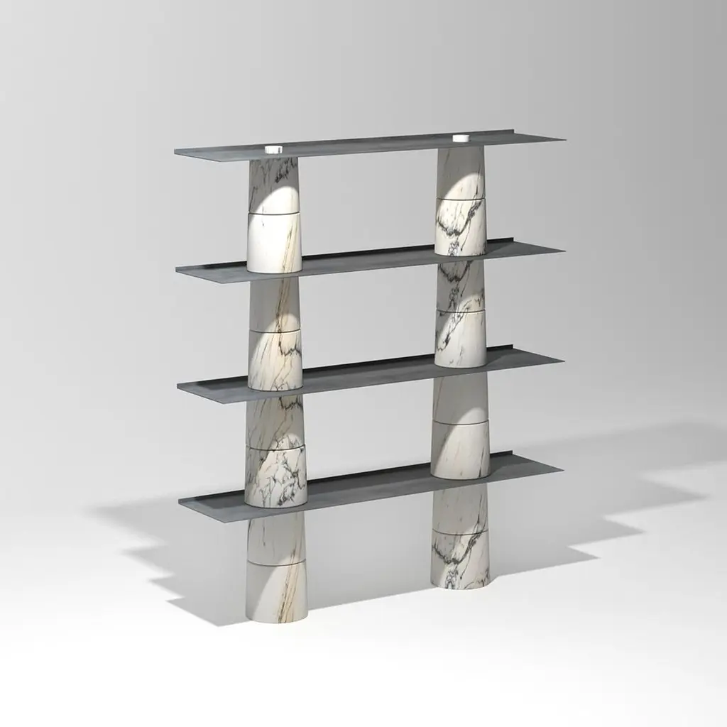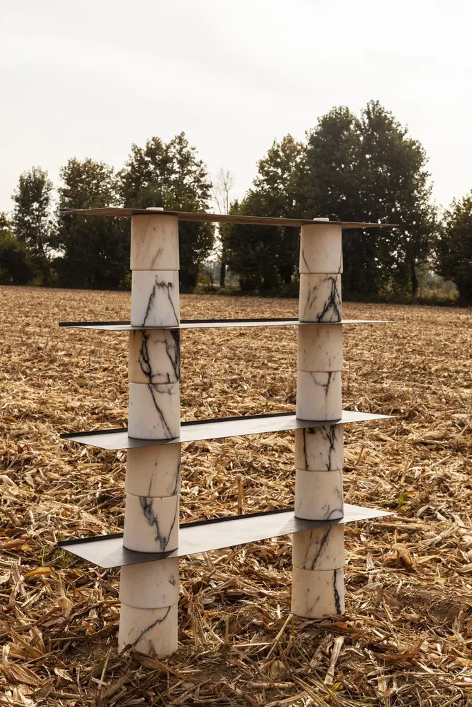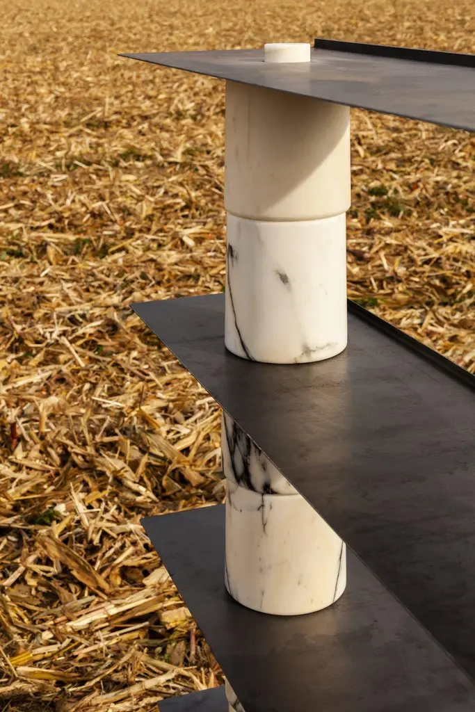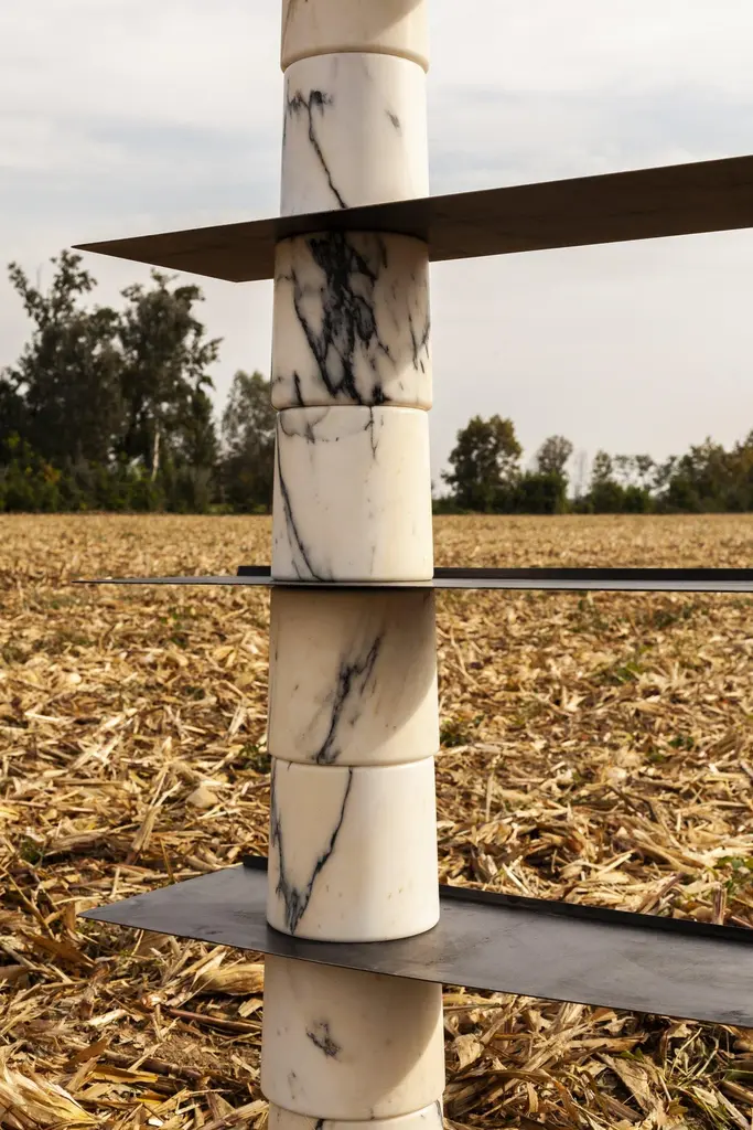Stacked Marble Modular & Steel Top Contemporary Art Console By Samuele Brianza