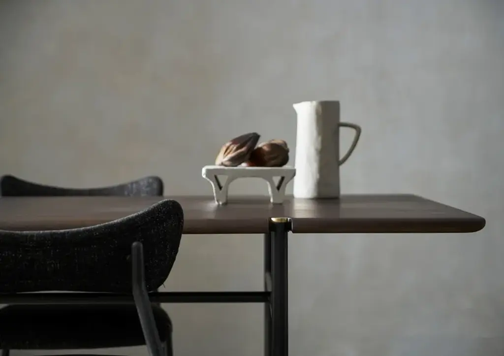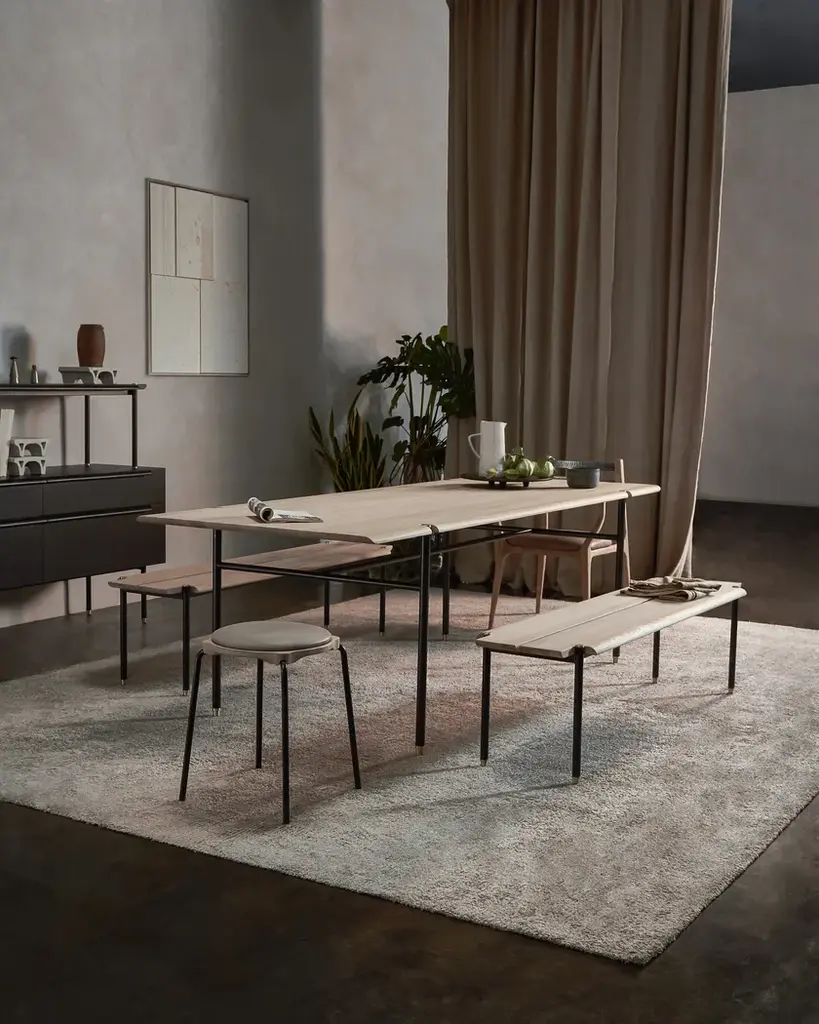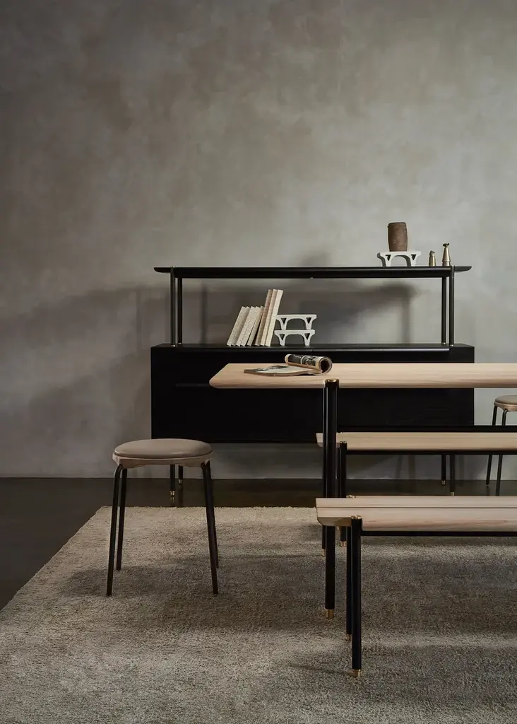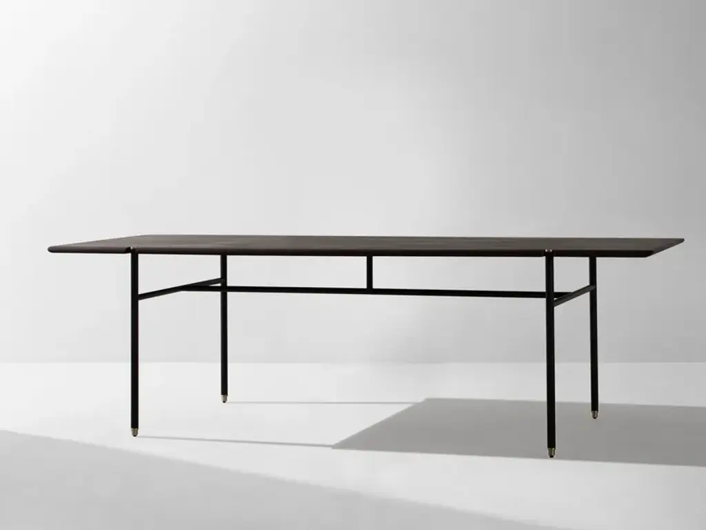 Rational and warm. Versatile and singular. The Stacking Dining Table is crafted from solid oak, with blackened steel legs and brass accents - similar to other products in our Stacking collection. Its streamlined aesthetic and considered details welcomes flexible pairings with a great set of other chairs in our inventory. From relaxing breakfasts to special gatherings, the Stacking Dining Table delivers the perfect framework for an inspired life. Material: Oak, Black Steel LegsCreative solutions for seating arrangements, storage and shelving systems. The Stacking collection features linear and symmetrical design crafted from oak, blackened steel and brass details. Distinct as standalone pieces, the modules can also be easily joined in respect to the purposes of spaces.