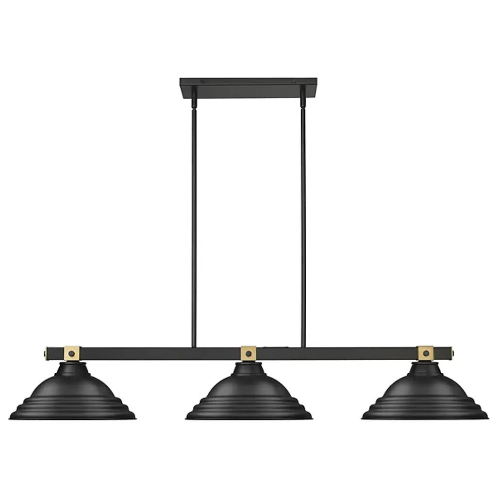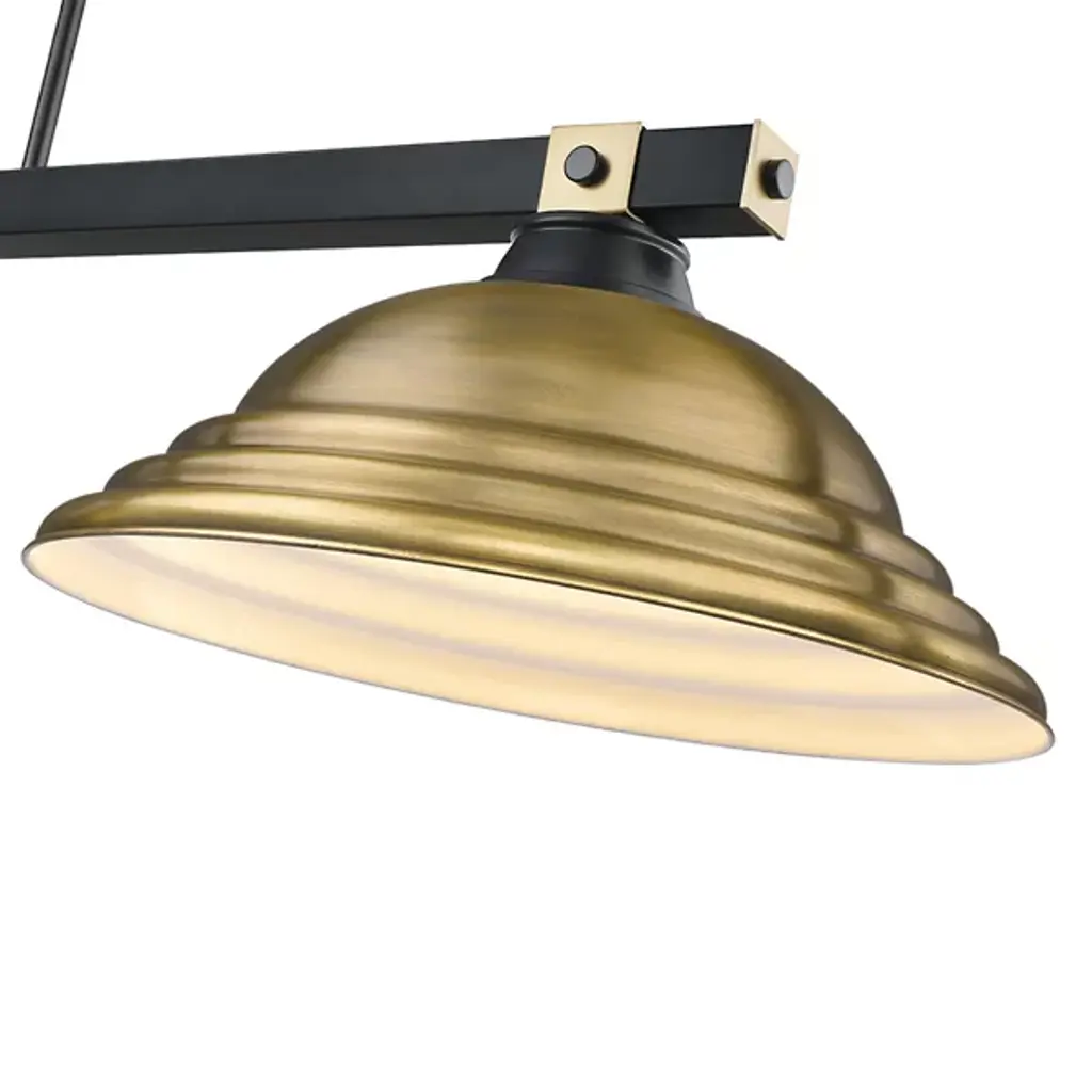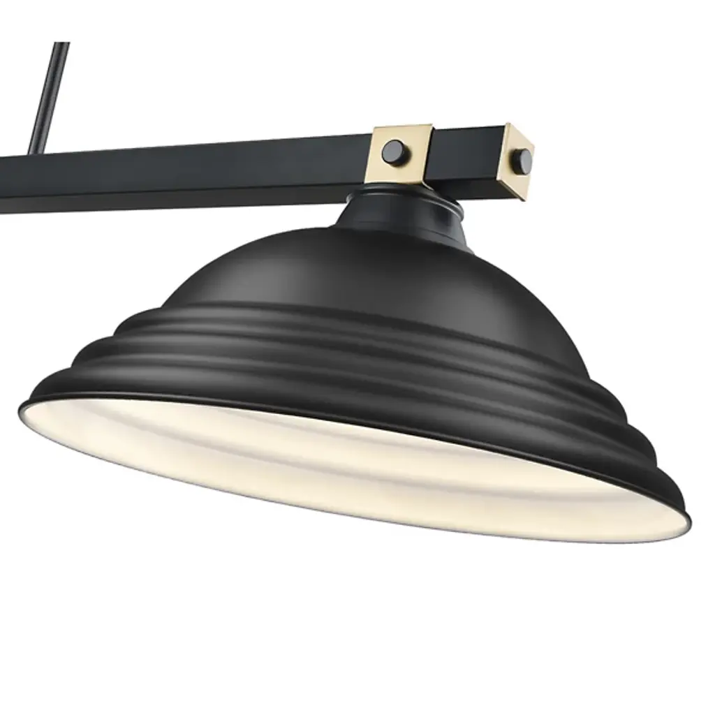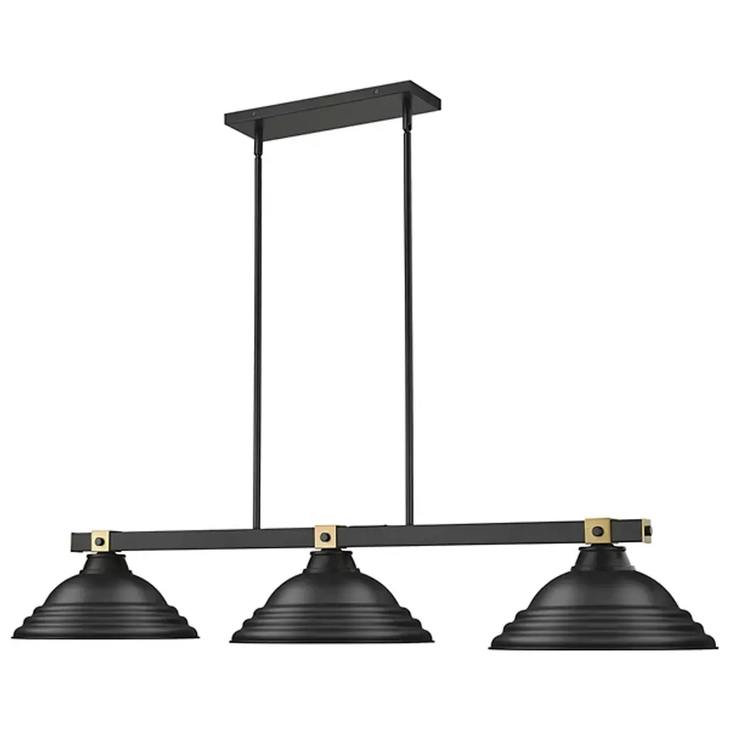 The Stanley Linear Suspension from Huxe features delicate stepped details, adding subtle texture and character to its linear design. Ideal for pool tables, dining rooms, or kitchen islands, it offers a sleek and contemporary aesthetic. A matte black finish enhances its refined simplicity, while the rubbed brass accents on the shades introduce a touch of warmth. The white interiors of the shades ensure bright, even illumination, making this fixture a stylish and functional lighting solution for any space.