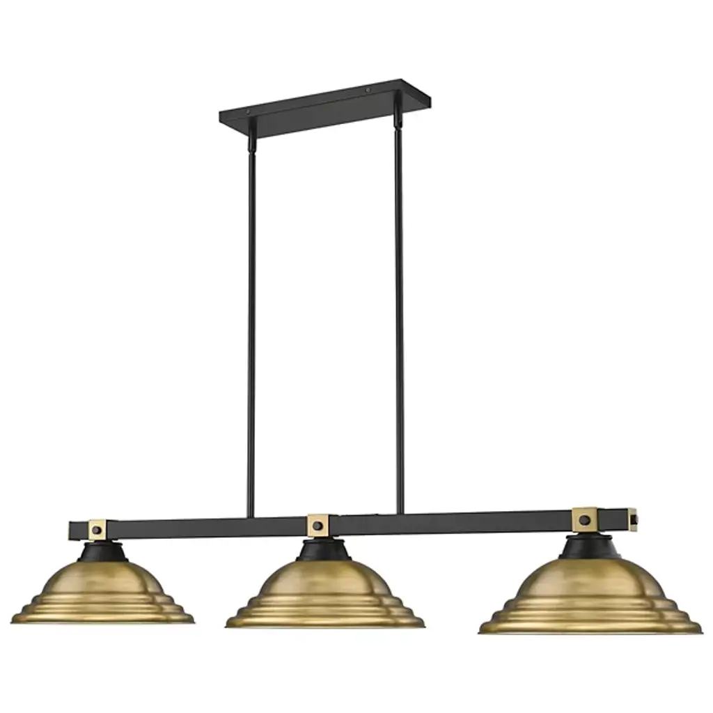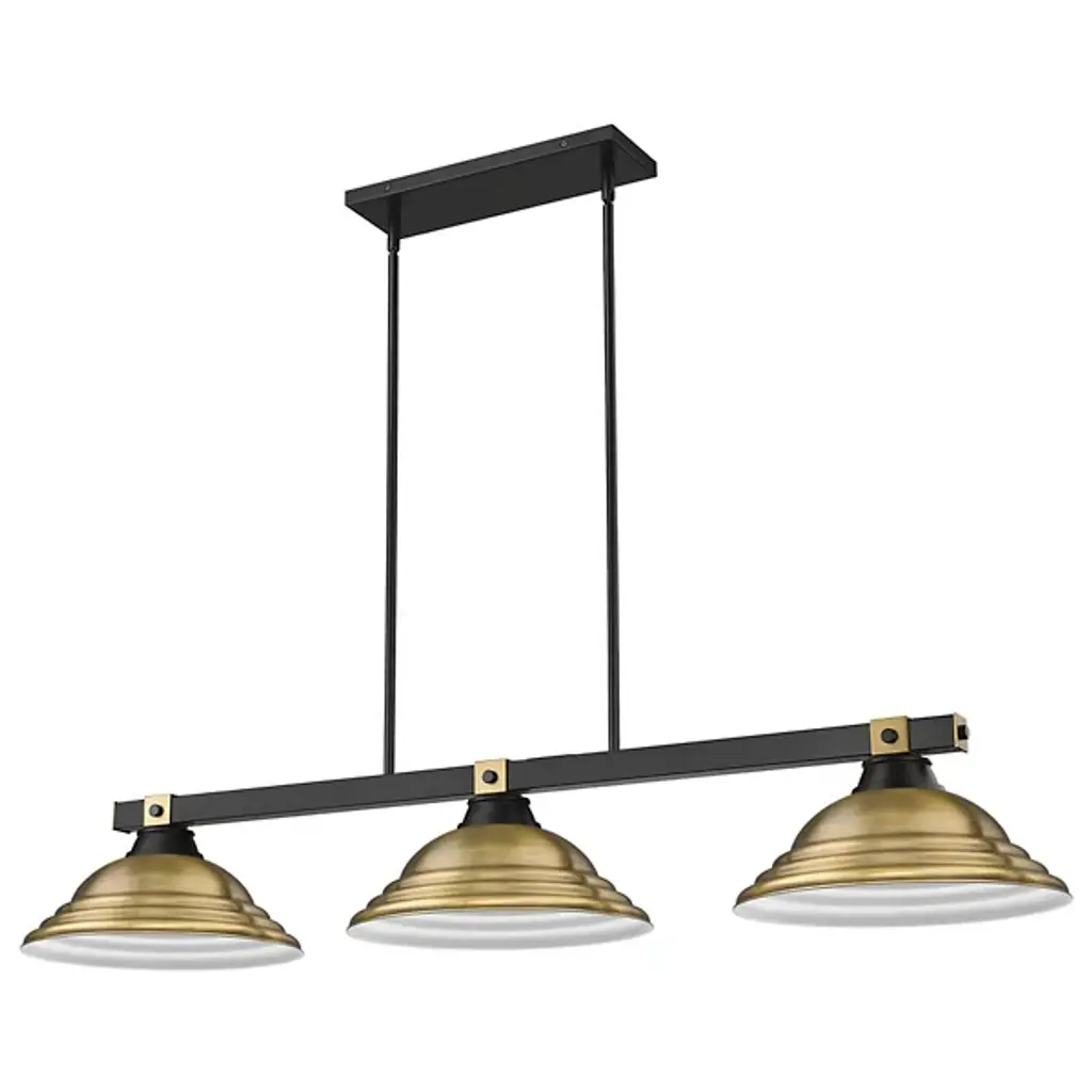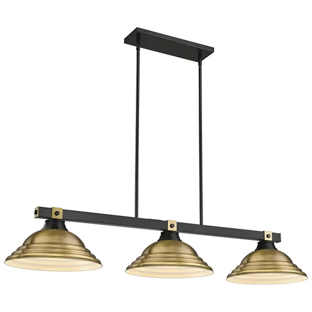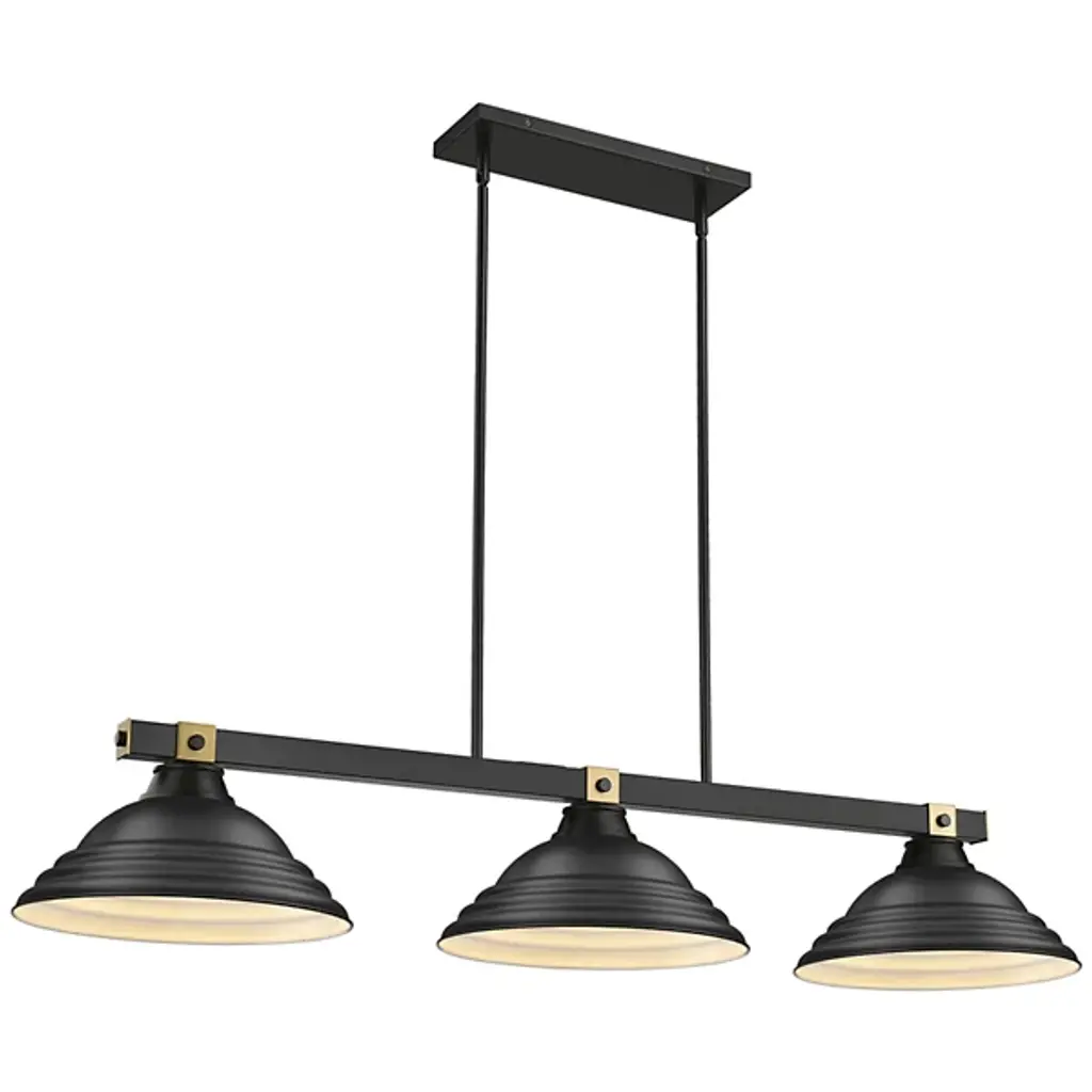 The Stanley Linear Suspension from Huxe features delicate stepped details, adding subtle texture and character to its linear design. Ideal for pool tables, dining rooms, or kitchen islands, it offers a sleek and contemporary aesthetic. A matte black finish enhances its refined simplicity, while the rubbed brass accents on the shades introduce a touch of warmth. The white interiors of the shades ensure bright, even illumination, making this fixture a stylish and functional lighting solution for any space.