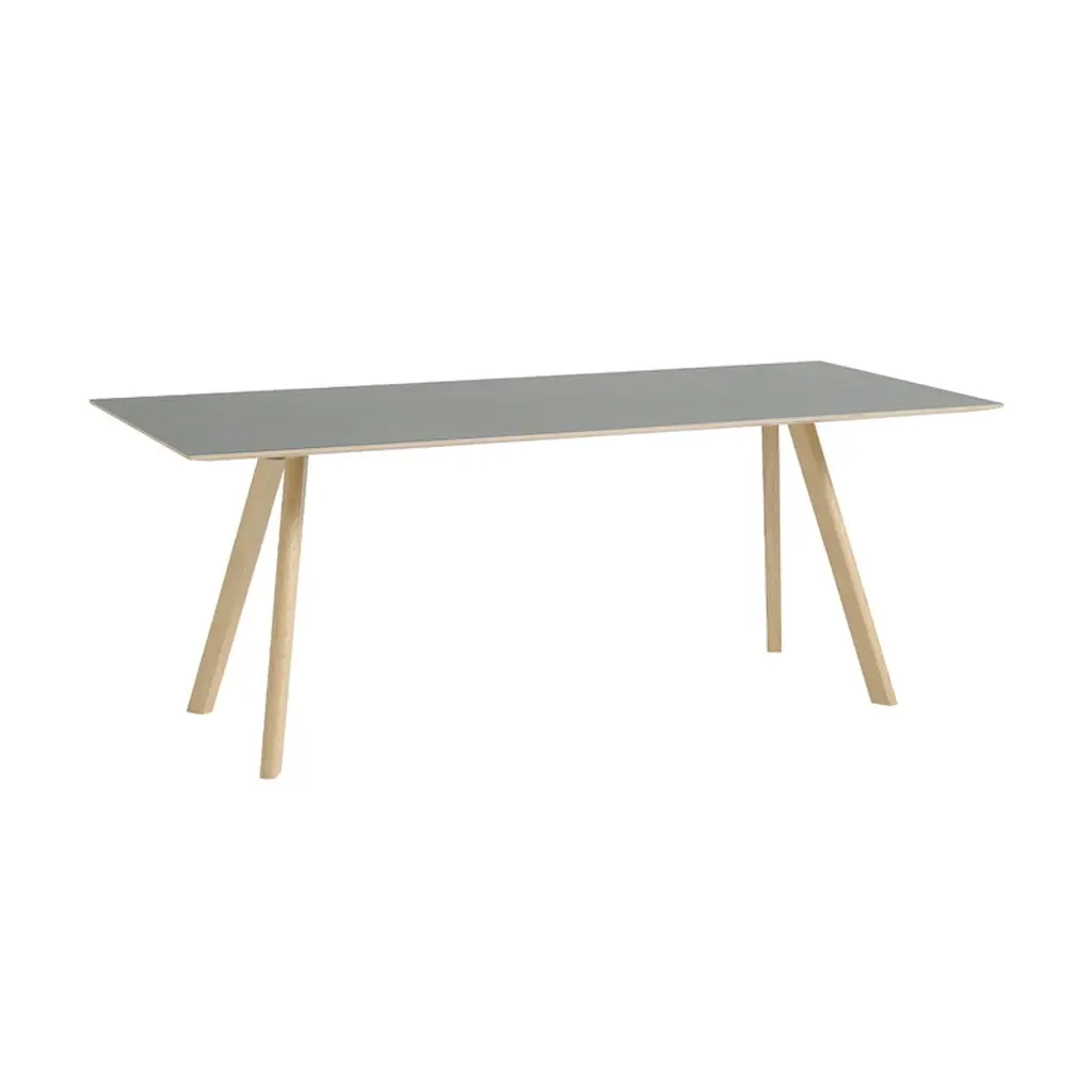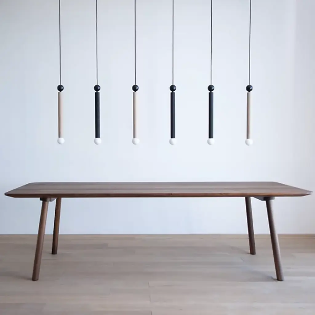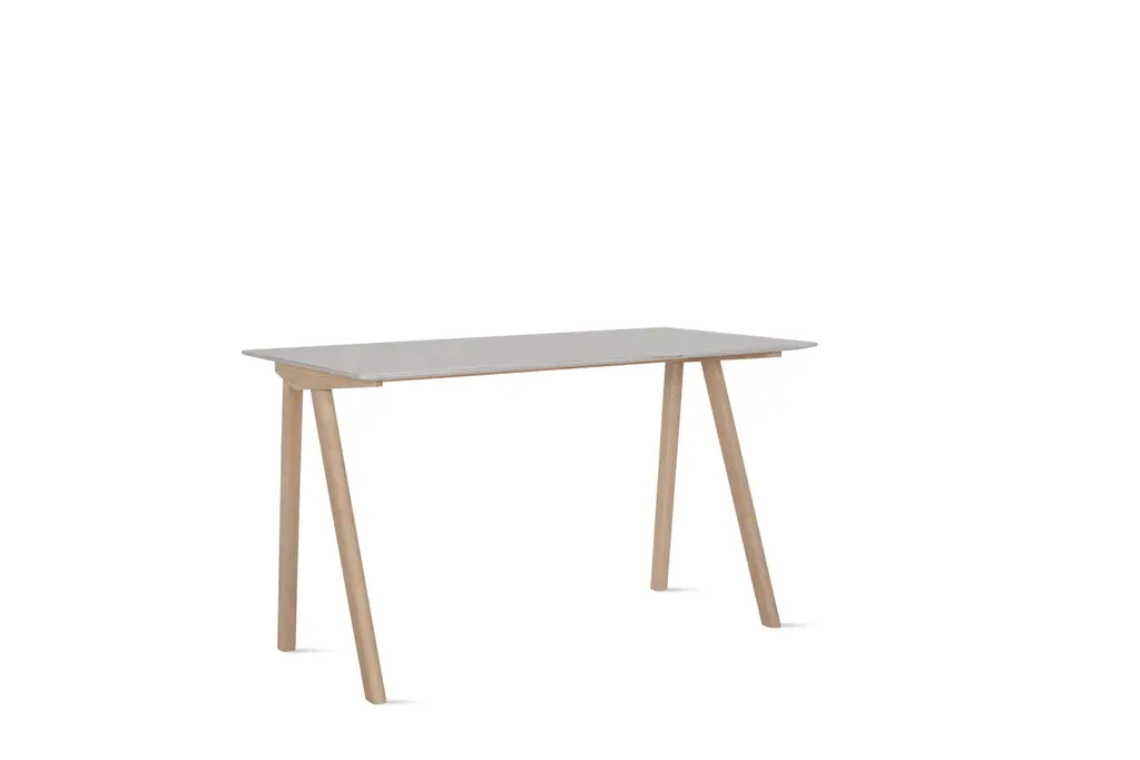 The Sterling Dining Table from hollis+morris offers strength and style in a straightforward contemporary package. The open design lets you show off artistic items in hollis+morris studio spaces and provides plenty of surface area for group gatherings. Developed after an announcement by the Museum of Contemporary Art, it nods at classic design with a hardwood construction that contrasts the angles of its bevel-edged top with outward-reaching legs. The angled legs provide a steady platform for the tabletop, while the woodgrain pattern on display adds a subtle natural note to the otherwise clean surface.