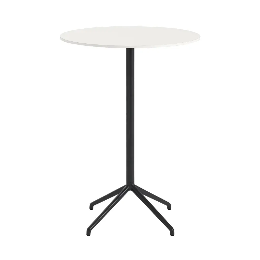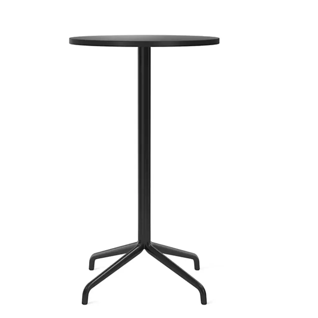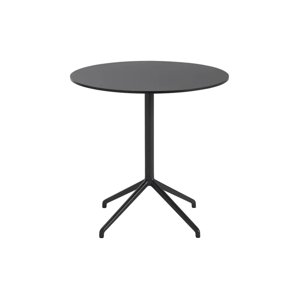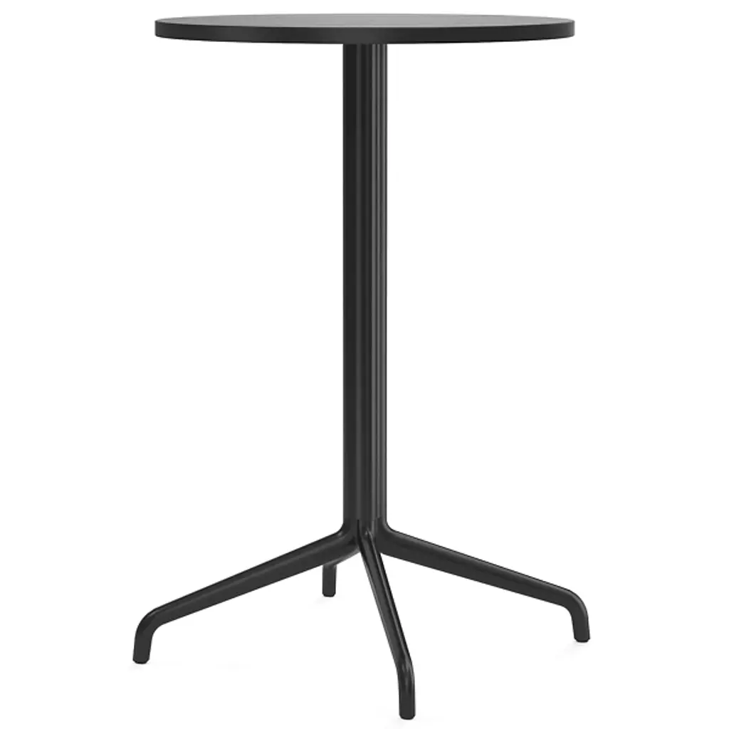 In standard, bar and counter versions, Copenhagen-based designers Iskos-Berlin add a round-tabletop version to their Still series. A crisp graphic silhouette in black defines this superbly functional and unassumingly handsome table with a tubular center column and a 4-legged base in powder-coated steel. The rounded tabletop is available in either nanolaminate or linoleum surface with the refined detailing of angled edges. Still serves a variety of roles in both the home and contract environs—as a kitchen dining spot, in a restaurant or bar, or as an option for a meeting room or the office.