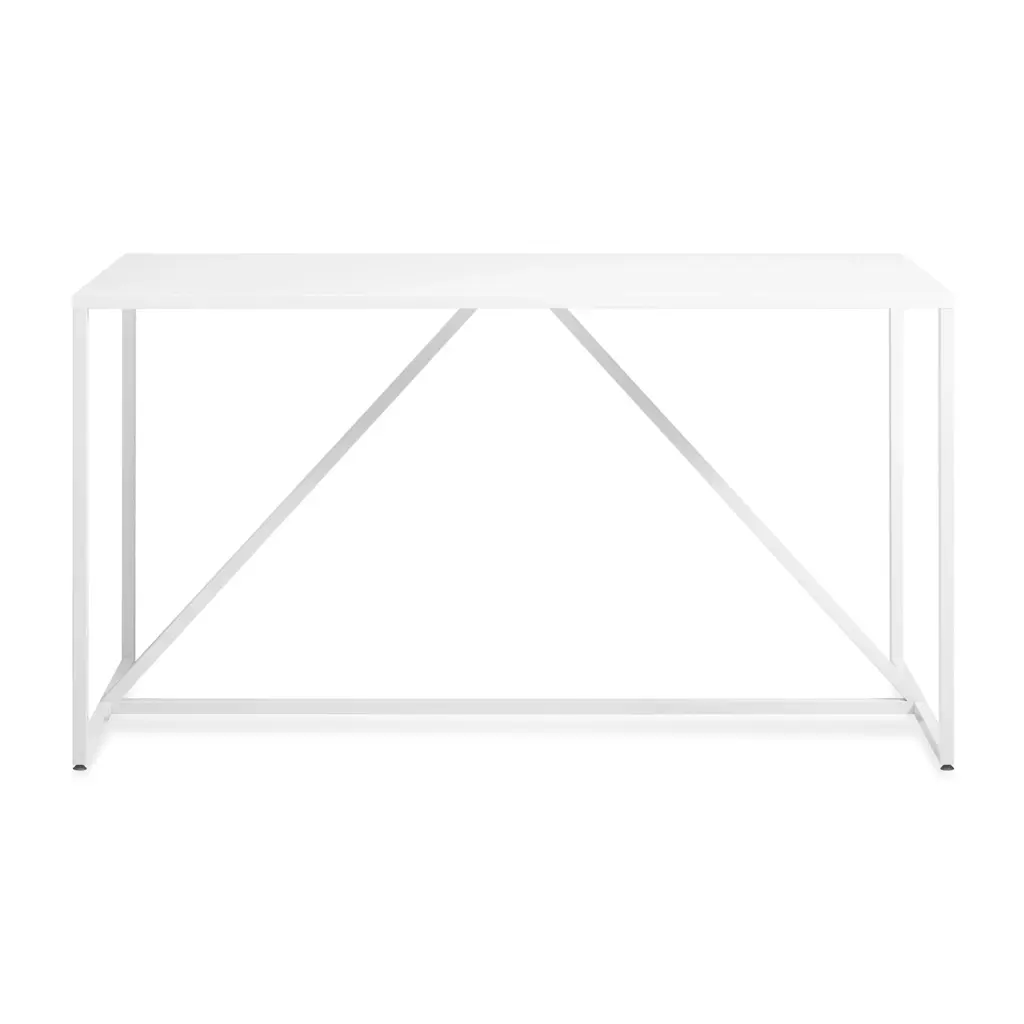 Part of the popular Blu Dot Strut table series, the Strut Large Bar Height Table is a versatile, yet modern table that features the signature minimalist Strut form. This bar height powder coated steel design can serve many purposes, from dining table to standing desk, and, thanks to its refined barely-there profile, makes a subtle design statement wherever it's placed. This bar height table is an ideal choice for both casual and formal settings. Features