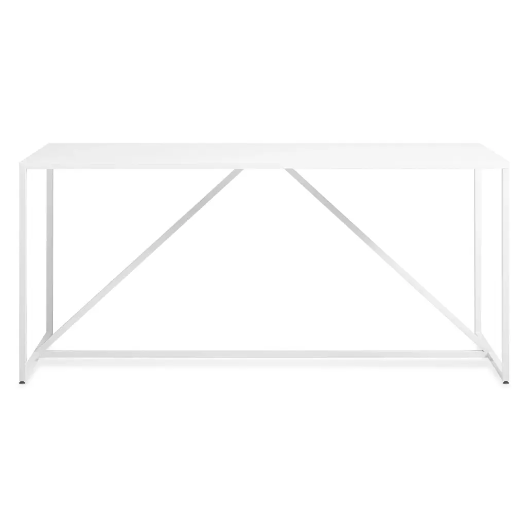 Part of the popular Blu Dot Strut table series, the Strut Large Bar Height Table is a versatile, yet modern table that features the signature minimalist Strut form. This bar height powder coated steel design can serve many purposes, from dining table to standing desk, and, thanks to its refined barely-there profile, makes a subtle design statement wherever it's placed. This bar height table is an ideal choice for both casual and formal settings. Features