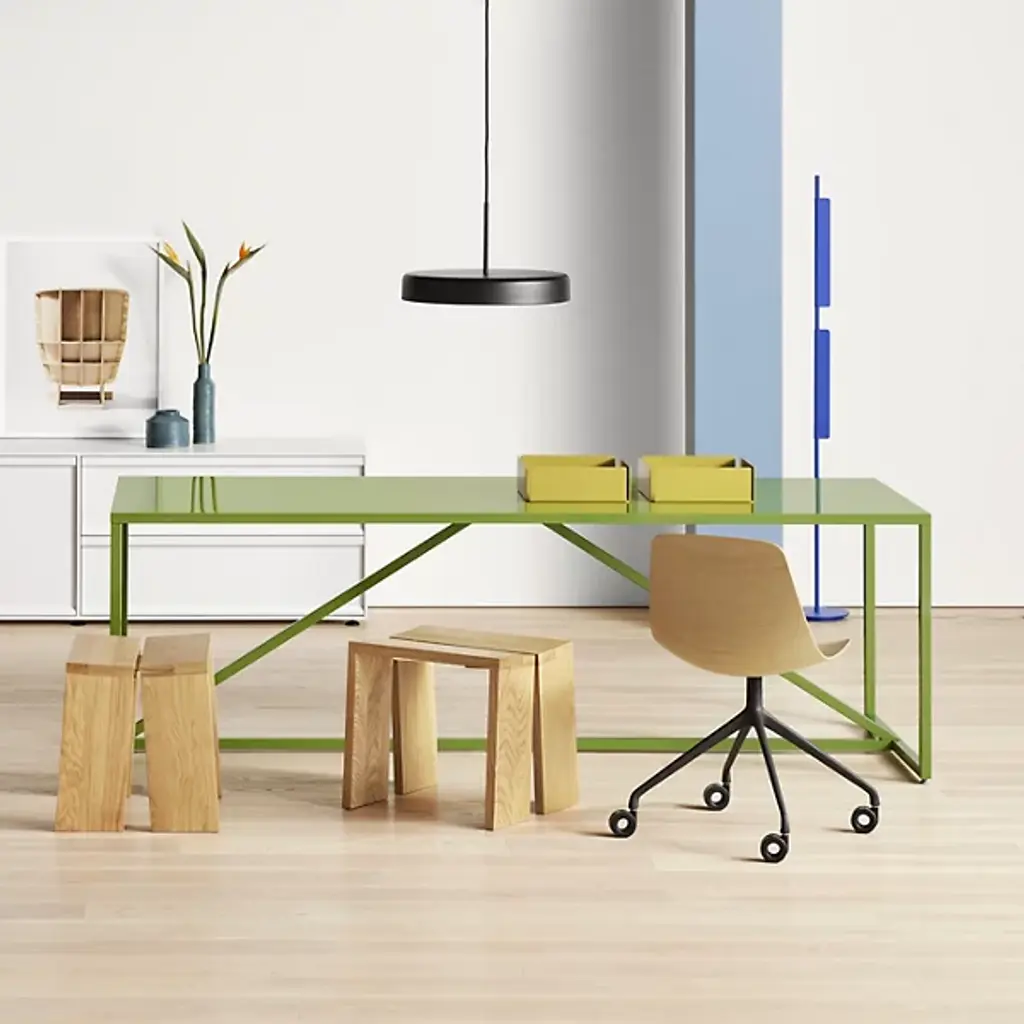The Strut Table by Blu Dot transforms the dining experience into a bold statement of urban style with its strong industrial lines and cheeky contemporary hues. With its powder-coated steel frame, MDF top and range of sizes, the Strut Table is suitable as a dining table, modern work surface or conference table.