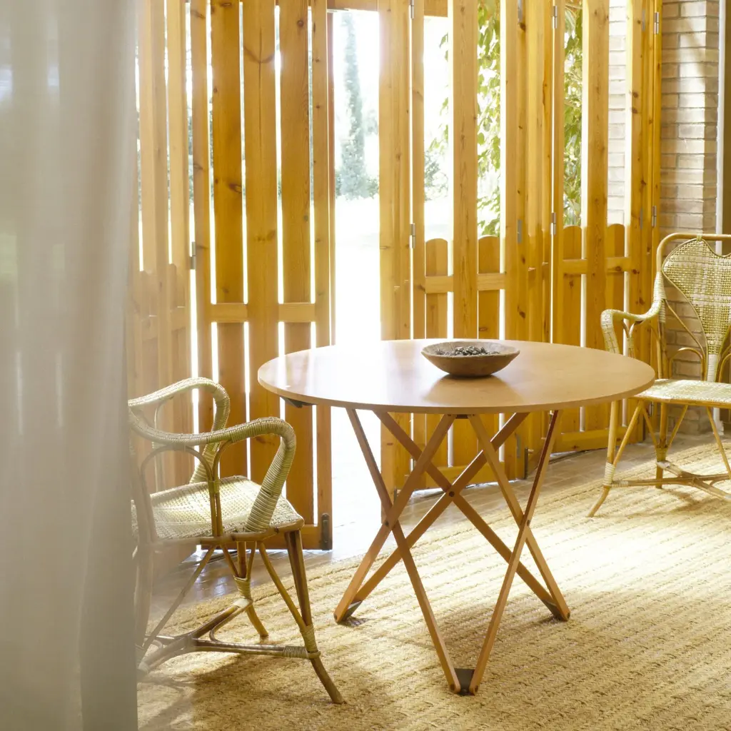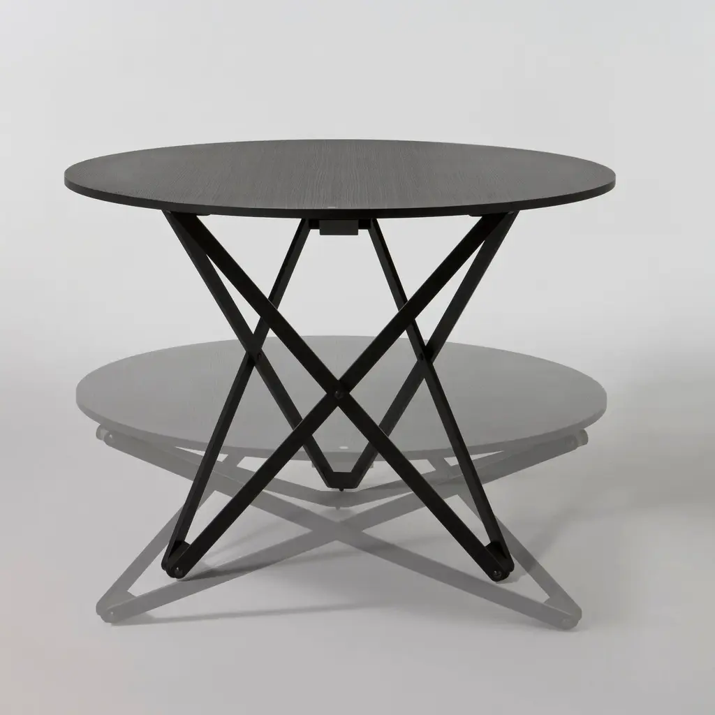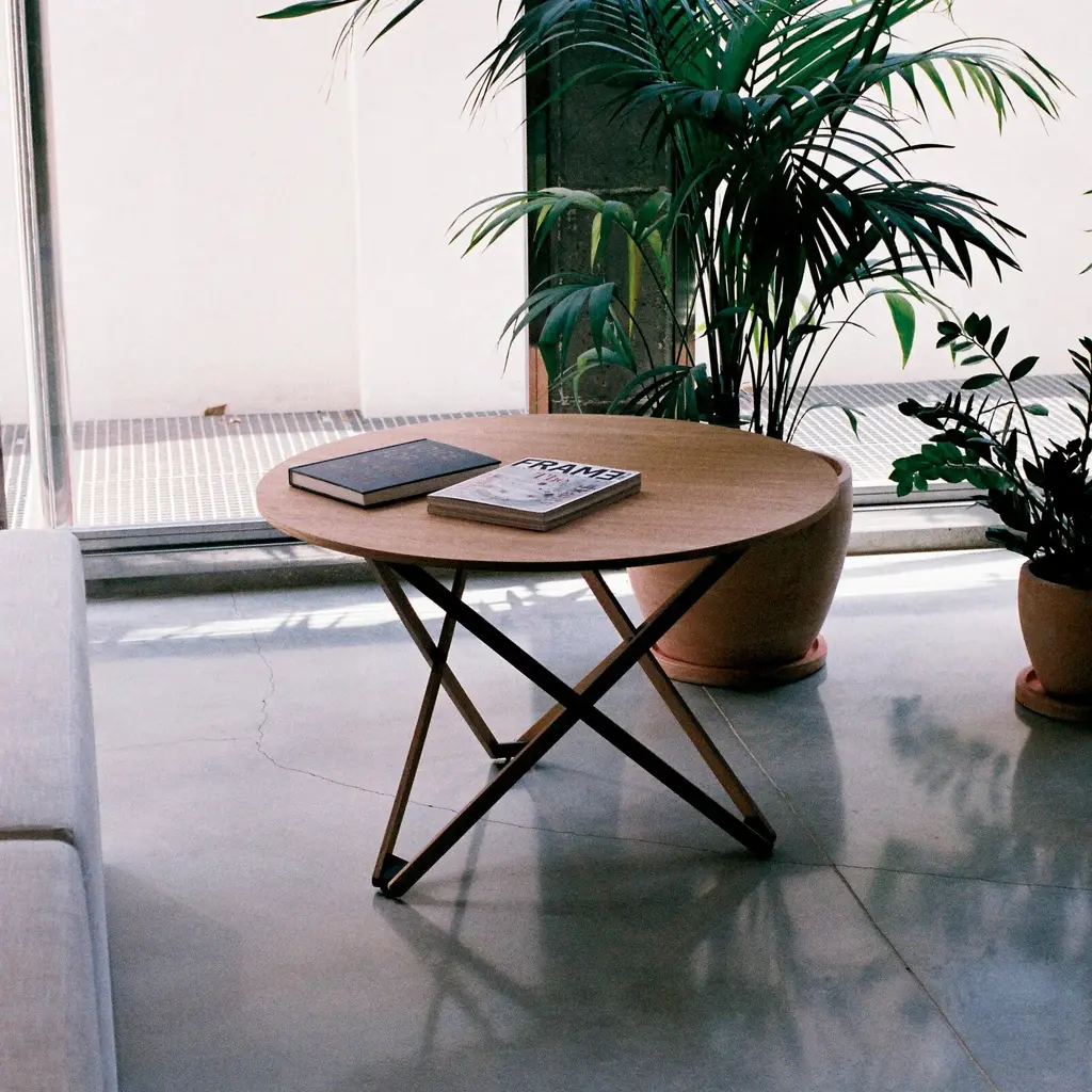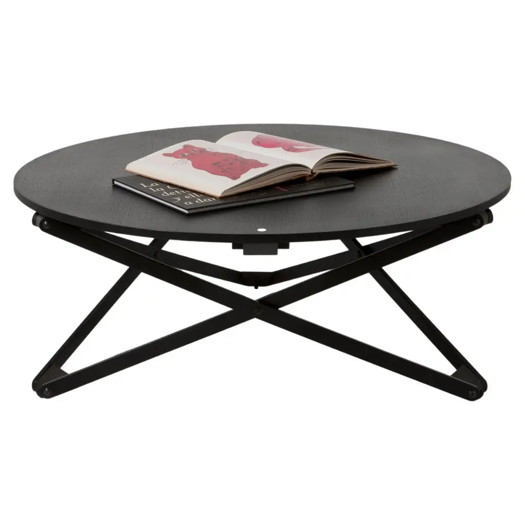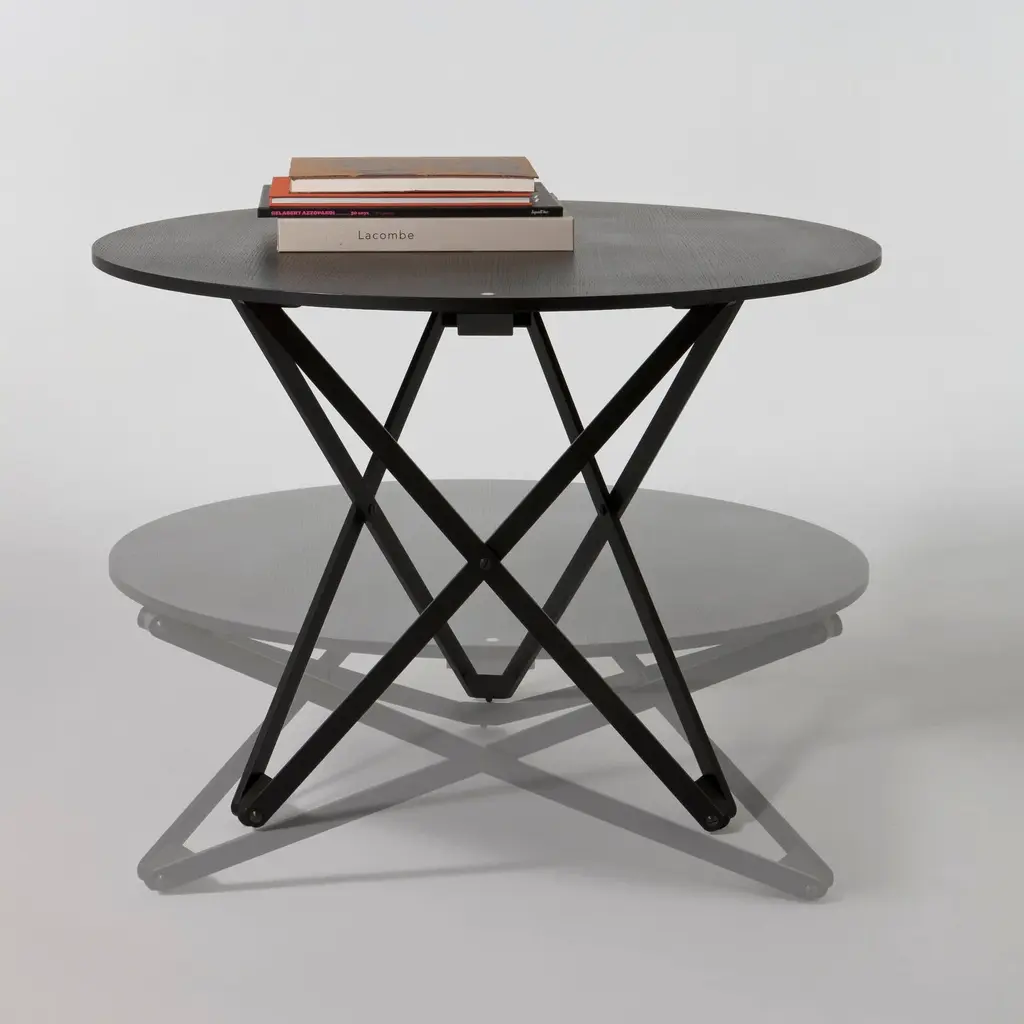Ingeniously, Subeybaja is a multipurpose round table with a wooden top and articulated legs that can be adjusted to 7 different heights. Designed in 1979 by Robert Heritage and Roger Webb for now-defunct Barcelona line Disform, it’s been revived by Santa & Cole, skillfully crafted in oak with a natural or black finish. From a dining surface to coffee table, the height is adjusted by means of a smart mechanism, with the control lever indicated by a white point on the tabletop.