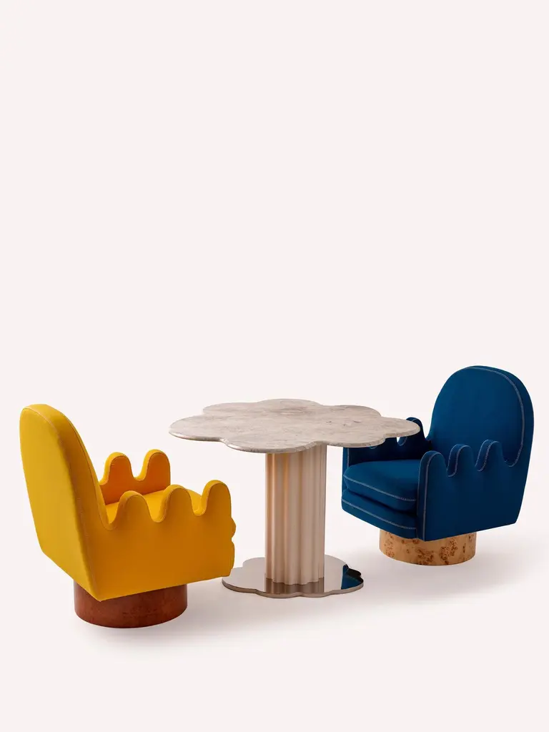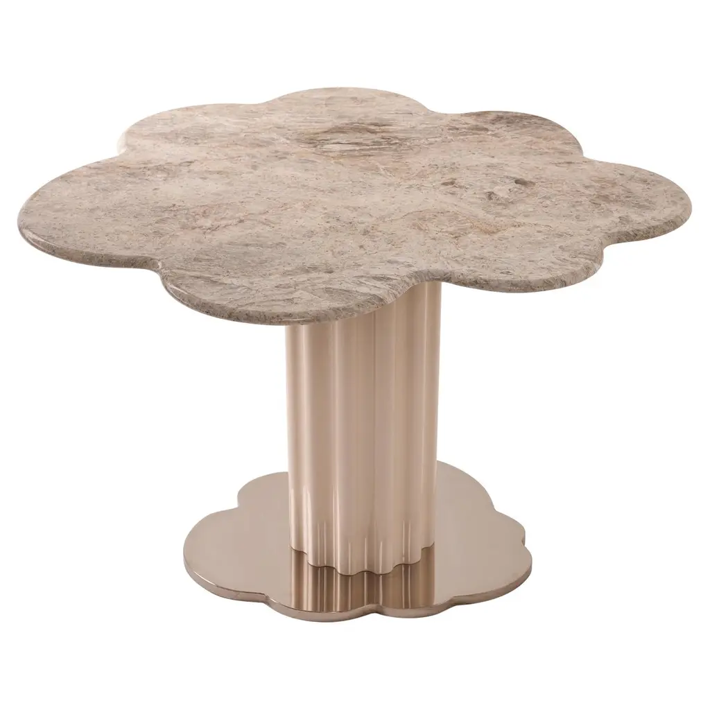 "Sulpap Table" is entirely handcrafted with high glossed lacquer finished pillar leg and polished metal base combined with black colored marble top with soft edges. It is inspired by mythological clouds and roman pillars .”Sulpap” is great as a dining table, work table or as a lounge table. This playful handcrafted table is perfect to accommodate 4 people. It is also customizable and can be produced in different sizes, finishes and tops.
