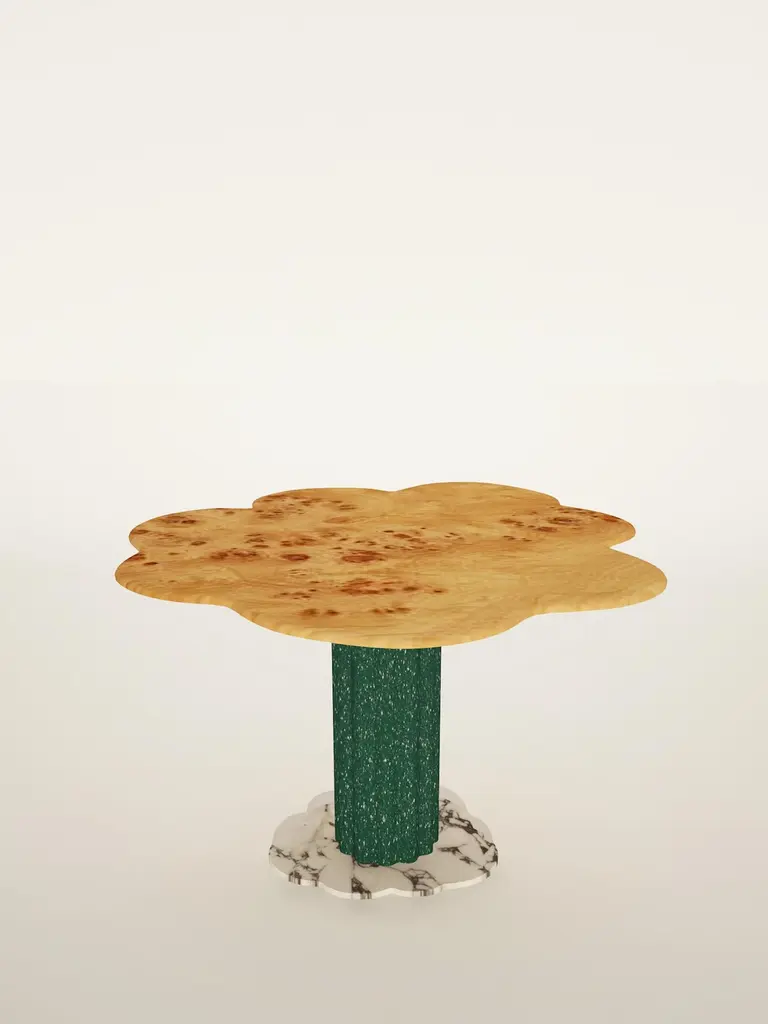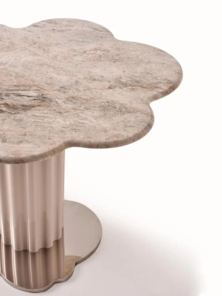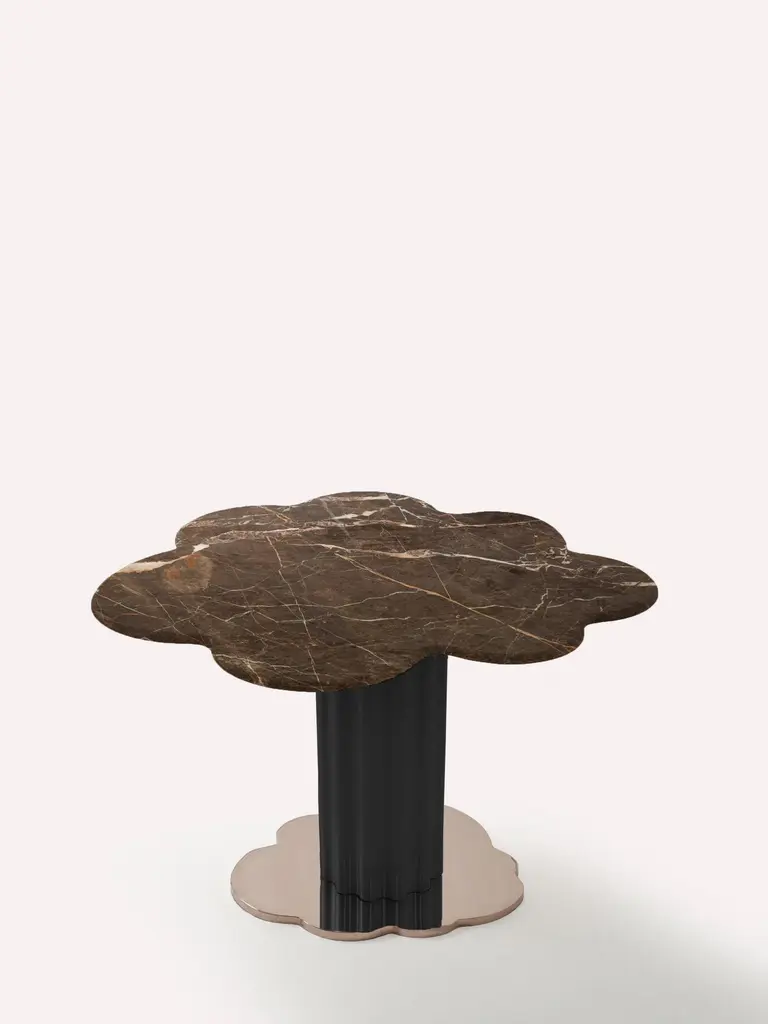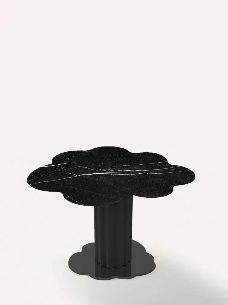 "Sulpap Table" is entirely handcrafted with high glossed lacquer finished pillar leg and polished metal base combined with black colored marble top with soft edges. It is inspired by mythological clouds and roman pillars .”Sulpap” is great as a dining table, work table or as a lounge table. This playful handcrafted table is perfect to accommodate 4 people. It is also customizable and can be produced in different sizes, finishes and tops.