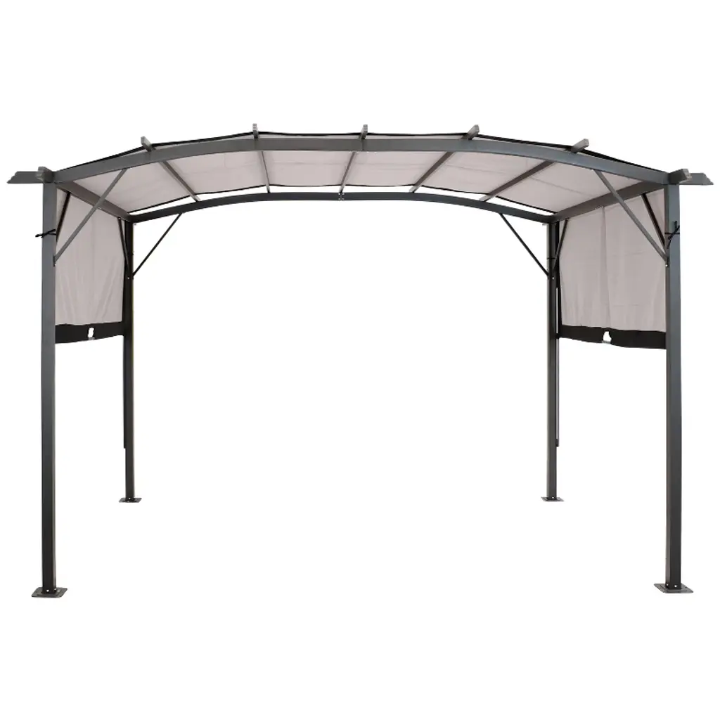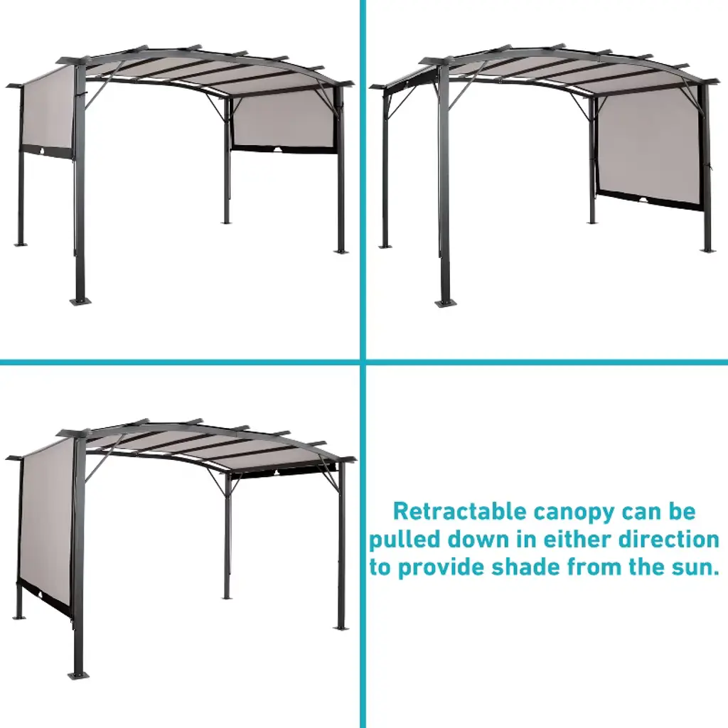 Sunnydaze 9' X 12' Metal Arched Pergola With Retractable Canopy Gray