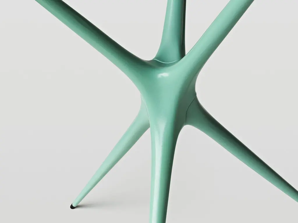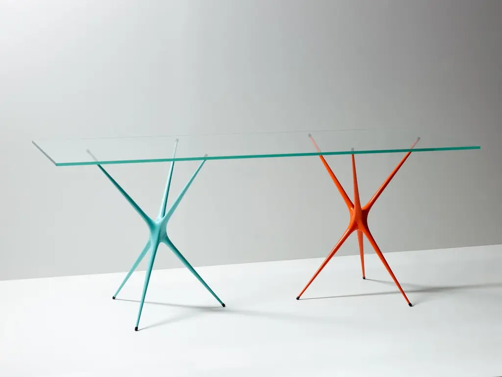 The contemporary supernova is a dynamic, self-levelling trestle cast entirely from entirely recycled aluminium in a fully sustainable closed-loop factory. Simple and versatile to orientate, the star shaped structure can be positioned vertically for a high desk or dining table or horizontally for a low coffee table. The number of trestles can vary according to glass size and are available in sea green, bright orange, charcoal black, pure white or raw aluminium.