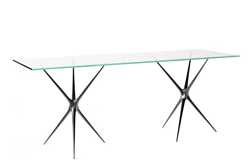 Supernova, Recycled Cast Aluminum Trestle Table Legs & Glass By Made In Ratio
