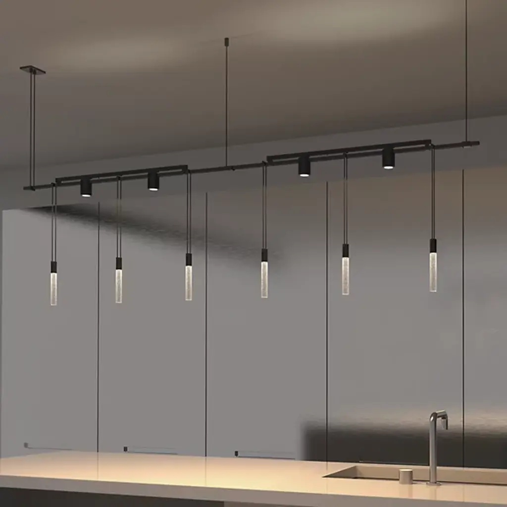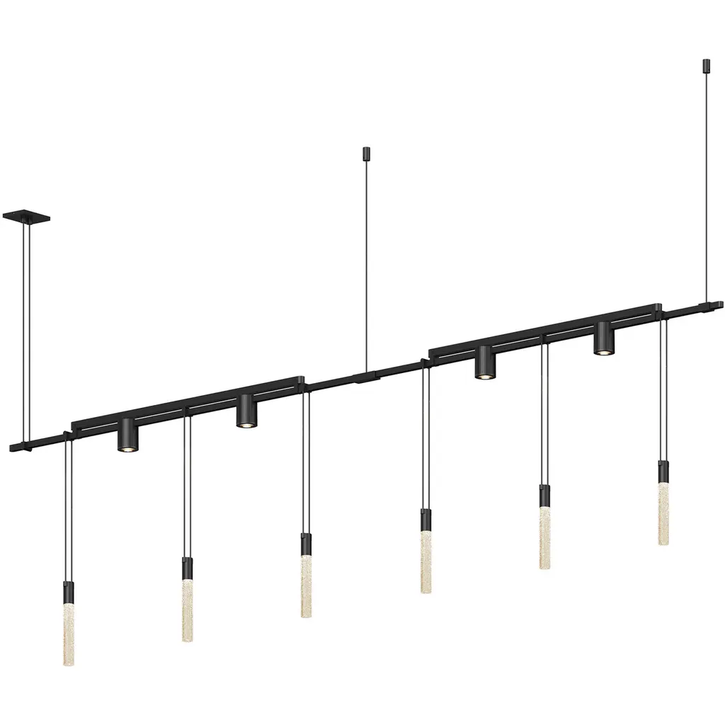 The SONNEMAN Suspenders 36 Inch 2-Bar In-Line Linear LED Lighting System - Crystal Rod mixes fashion and function with its versatile design. This fixture features two bar-mounted light bars as uplights, four bar-mounted cylindrical floodlights as downlights, and six crystal rod luminaires with indirect light. LED lighting offers energy efficiency. This piece is set as a linear suspension and looks great over kitchen islands, dining room tables, and office or conference room tables.