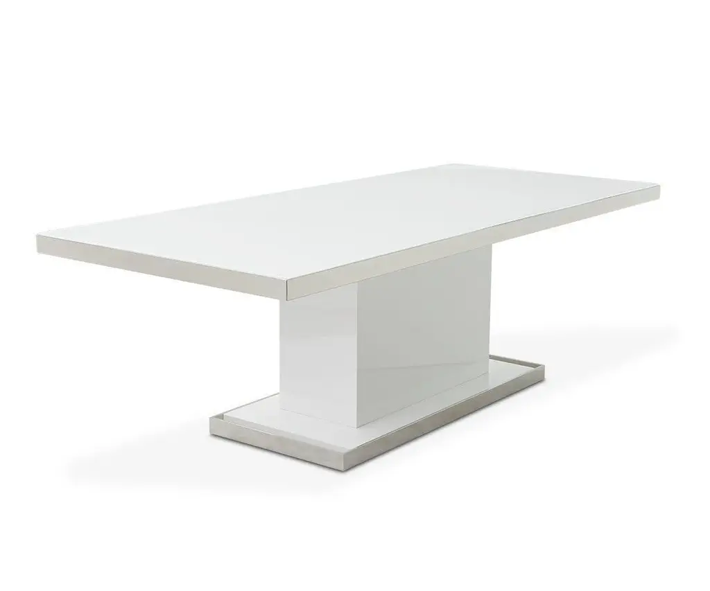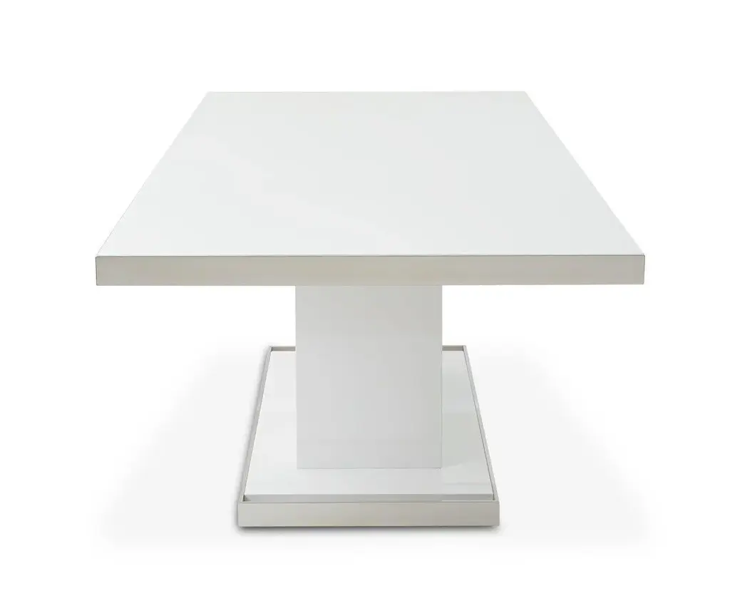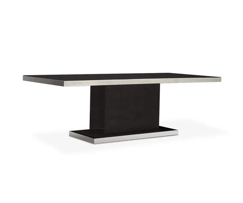 Establish a sleek and bold contemporary aesthetic in your dining room with the Svante 94" Dining Table. Comfortably serve eight as you gather around this distinctive piece featuring clean lines and a pedestal base trimmed in stainless steel.