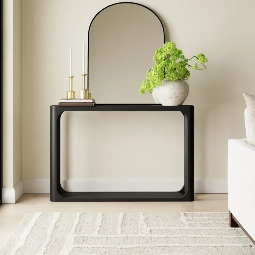 Add a touch of modern elegance to your living room, entryway, or dining area with the Sybil console table. This beautifully crafted piece features a sculptural design with gently curved legs that seamlessly connect the bottom shelf to the tabletop, creating a sleek and sophisticated silhouette. Its smooth, sanded finish complements any décor, while the solid mango wood construction ensures long-lasting durability and natural charm. Perfect for showcasing your favorite decorative pieces or creating a functional display, the Sybil console table blends style and practicality. Its versatile design makes it a standout addition to any room. Best of all, it arrives fully assembled for instant use and enjoyment.