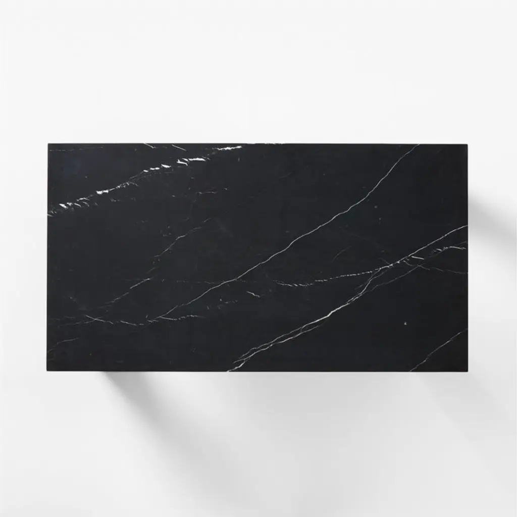 Designed by Melbourne-based VUUE, Marquina black marble dining table features a sophisticated mix of materials to elevate the classic rectangular silhouette. The rich veining of sleek black marble is juxtaposed with a white oak base certified sustainable by the Forest Stewardship Council (FSC). CB2 exclusive.