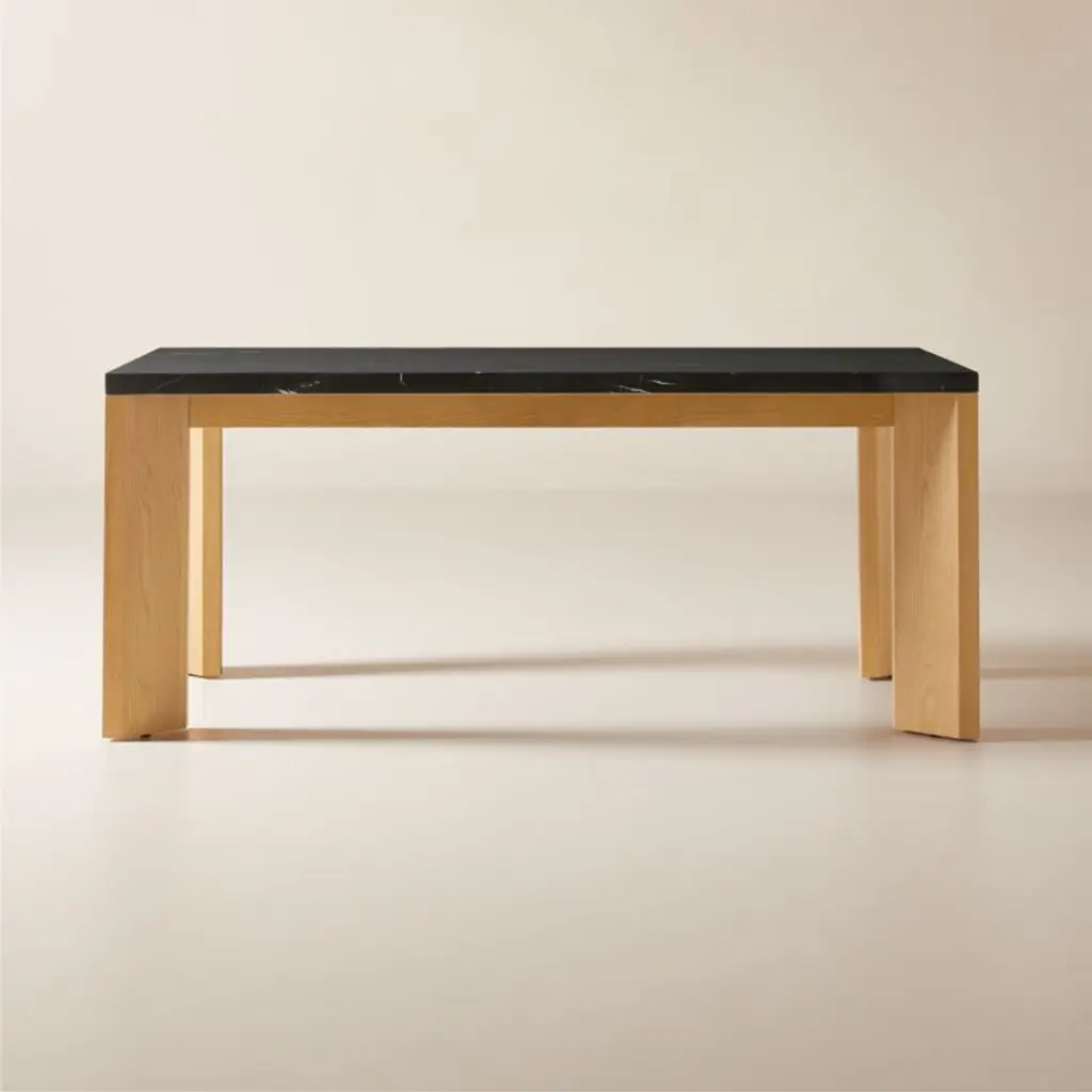 Sydney Rectangular Black Marble Dining Table With White Oak Legs 72''