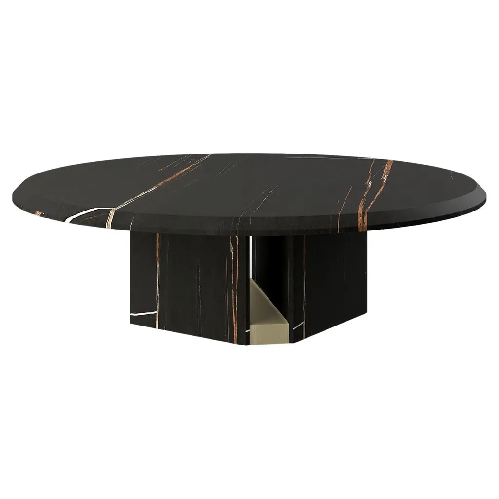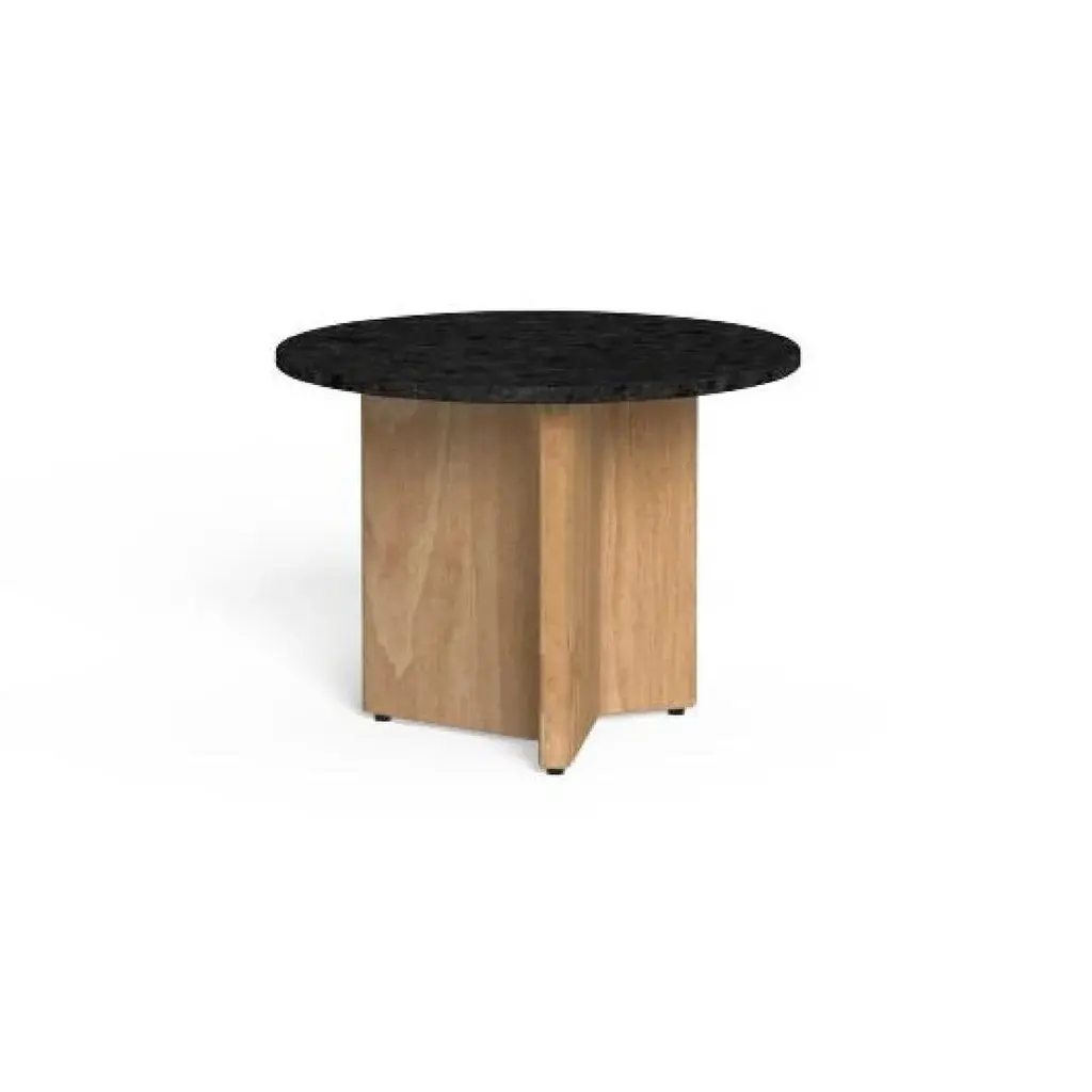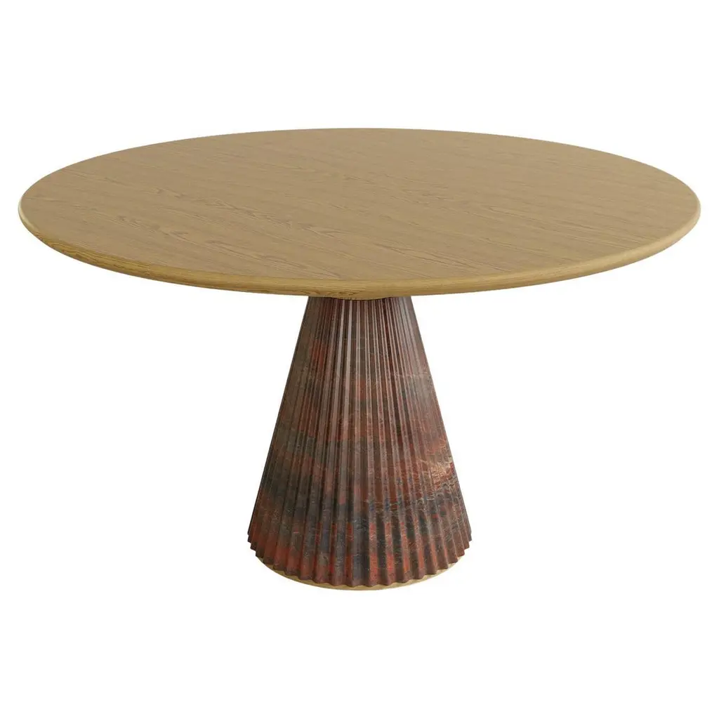 Brett Beldock modernizes the traditional round dining table with stunning finishes and unexpected texture. The natural texture of solid oak is highlighted throughout, accentuated by the wirebrushed finish. Ebonized hemlock wood supports from below in all black. CB2 exclusive.