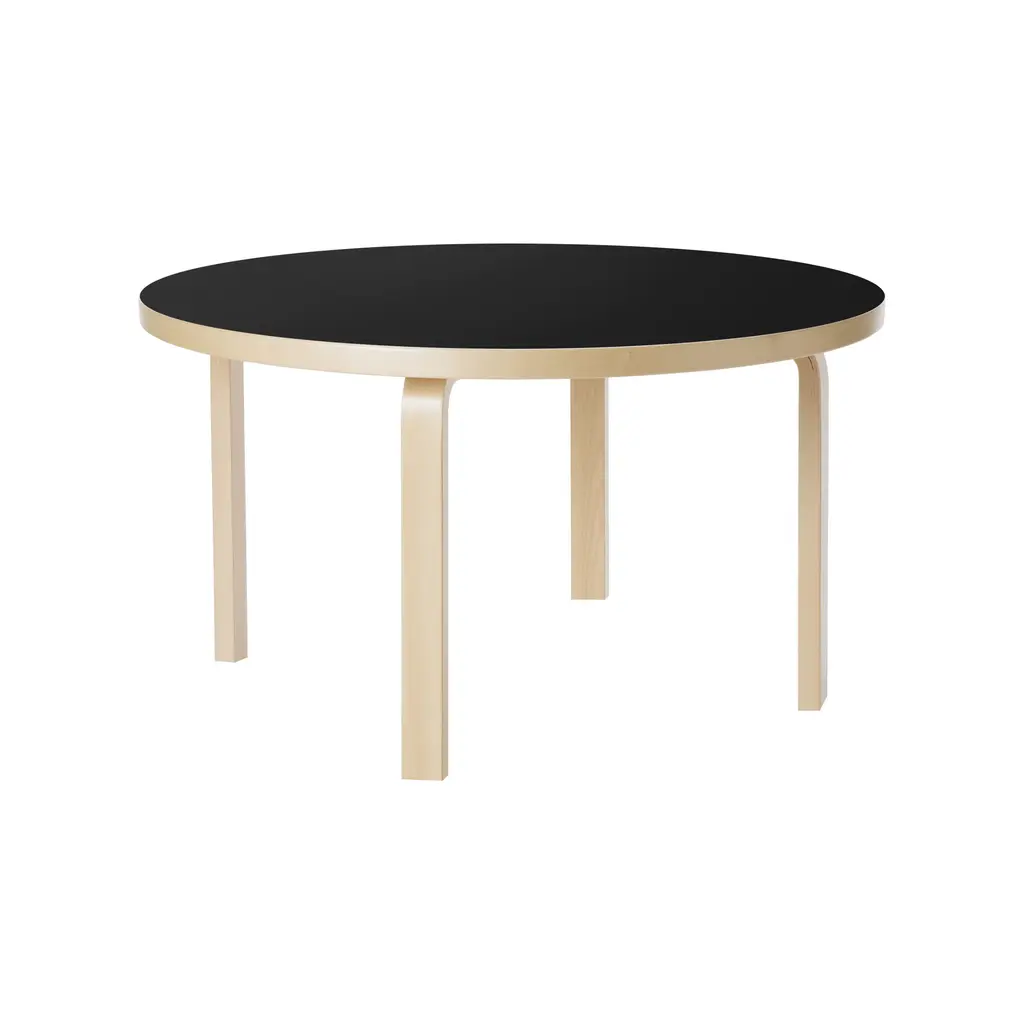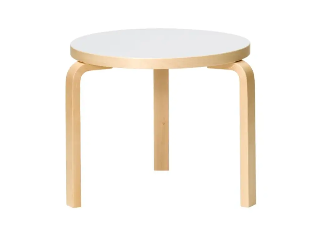 A perfectly petite and contemporary table for two. The Artek Table 90B was designed by Alvar Aalto in 1935, inspired by his Stool 60. As such, it includes three L-shaped bent birch legs supporting a perfectly round top. Its compact size and clean yet distinctive lines make the Table 90B ideal for the modern breakfast nook or smaller dining room.