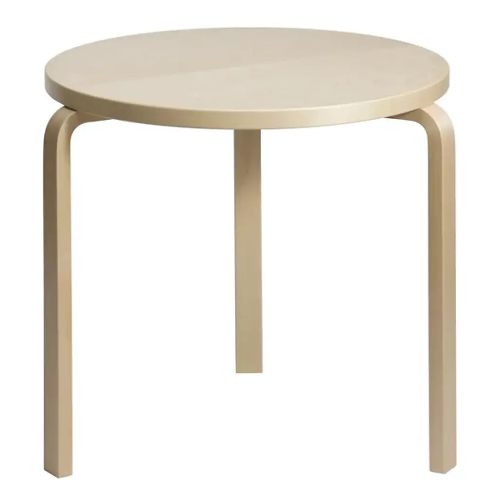 A perfectly petite and contemporary table for two. The Artek Table 90B was designed by Alvar Aalto in 1935, inspired by his Stool 60. As such, it includes three L-shaped bent birch legs supporting a perfectly round top. Its compact size and clean yet distinctive lines make the Table 90B ideal for the modern breakfast nook or smaller dining room.