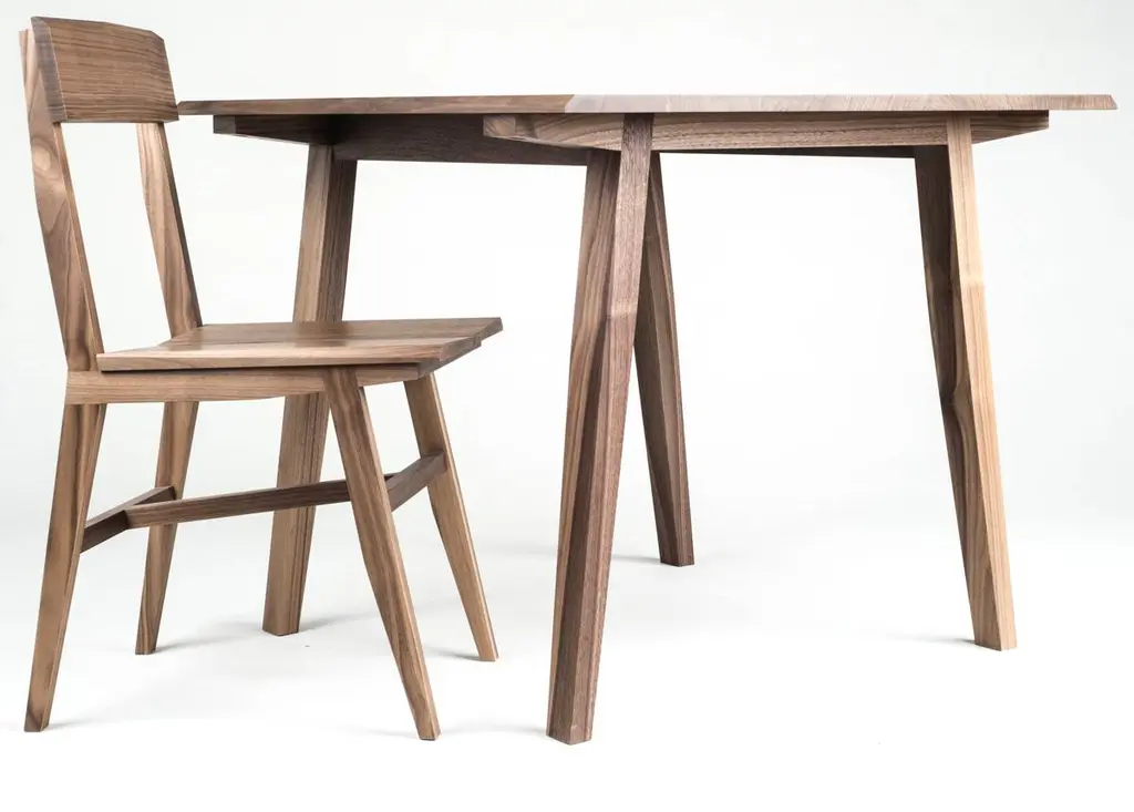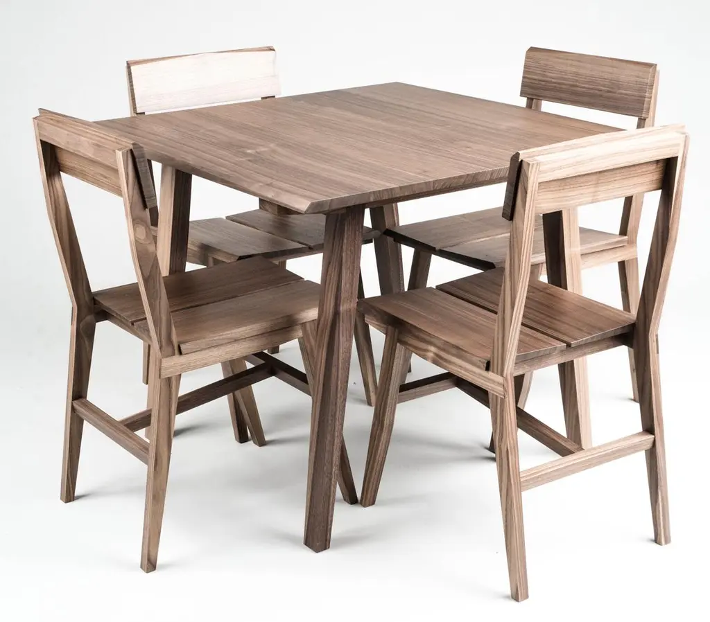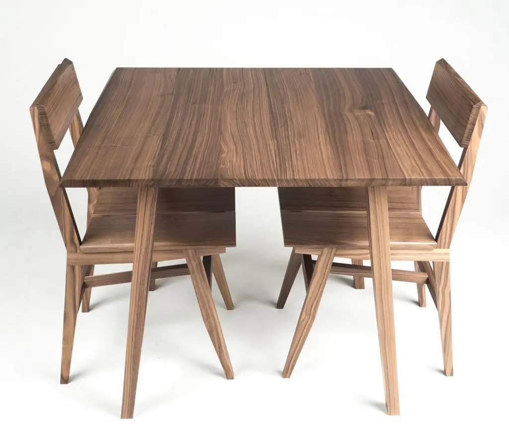 The lead time provided is an estimate and may extend up to 12 months. If you require delivery by a specific date, we kindly recommend inquiring prior to purchase to ensure availability.A versatile hardwood table that can be used as a card table, breakfast or apartment sized dining table. Modern styling, hand made out of hardwood and shown here in Walnut. Perfect for apartment living, fully customizable to create the perfect fit for you. Pairs perfectly with our Rift chair.