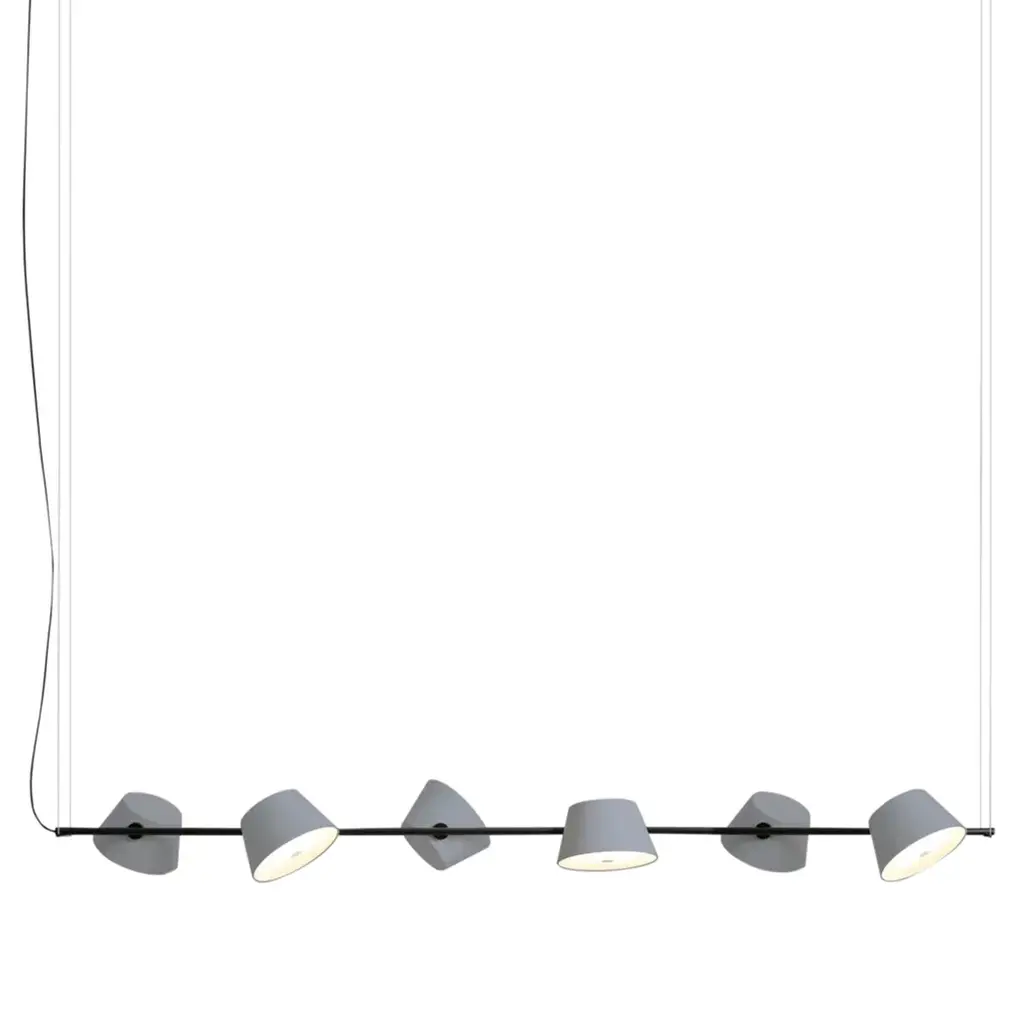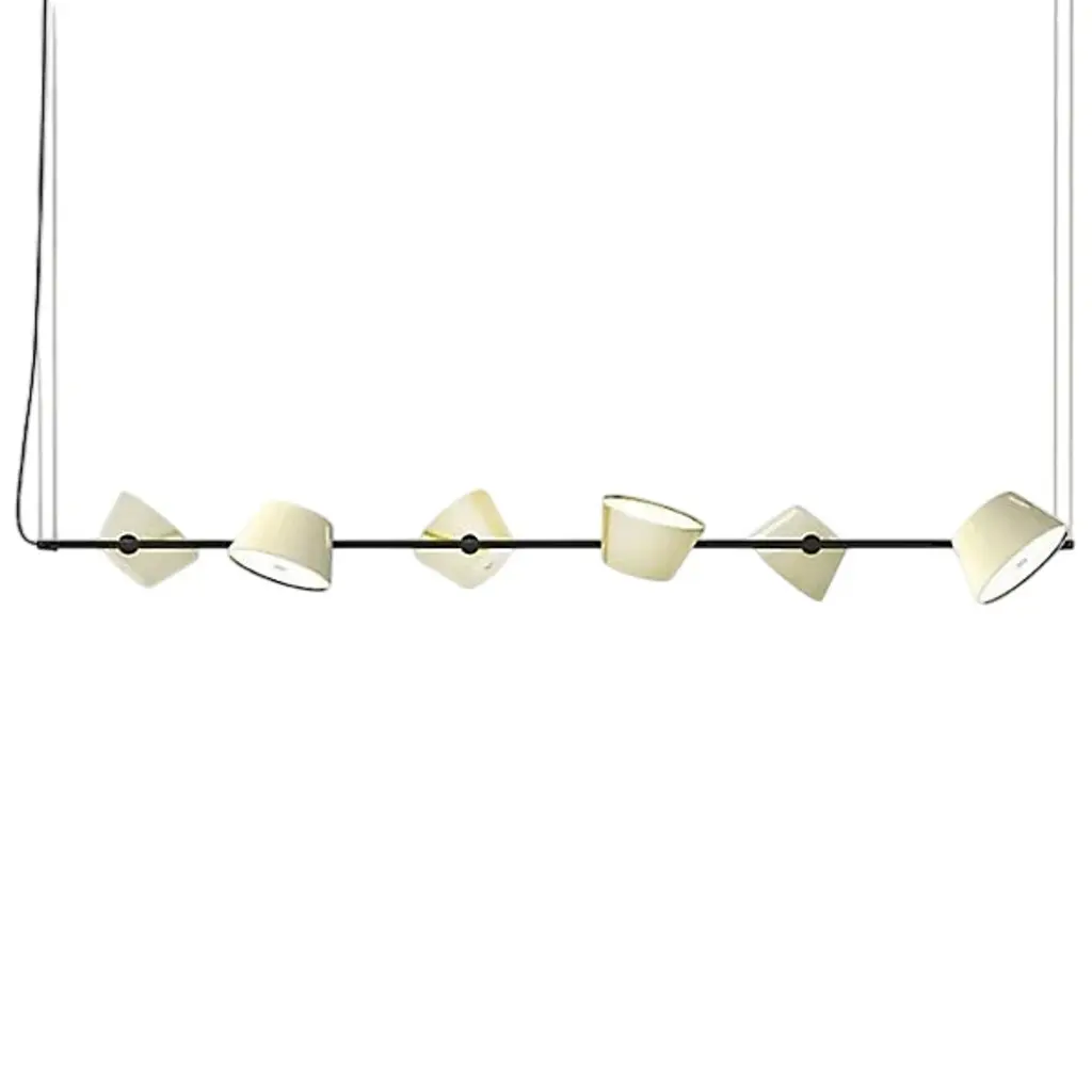 Design your neutral kitchen or dining room space with the Tam Tam 6-Light Linear Suspension by Marset. This extremely vivid linear suspension hangs perfectly over kitchen counters or dining room tables. Each shade can be easily adjusted and is offered in a variety of colors that come in solid options.