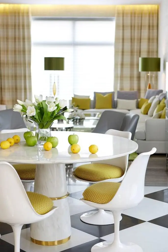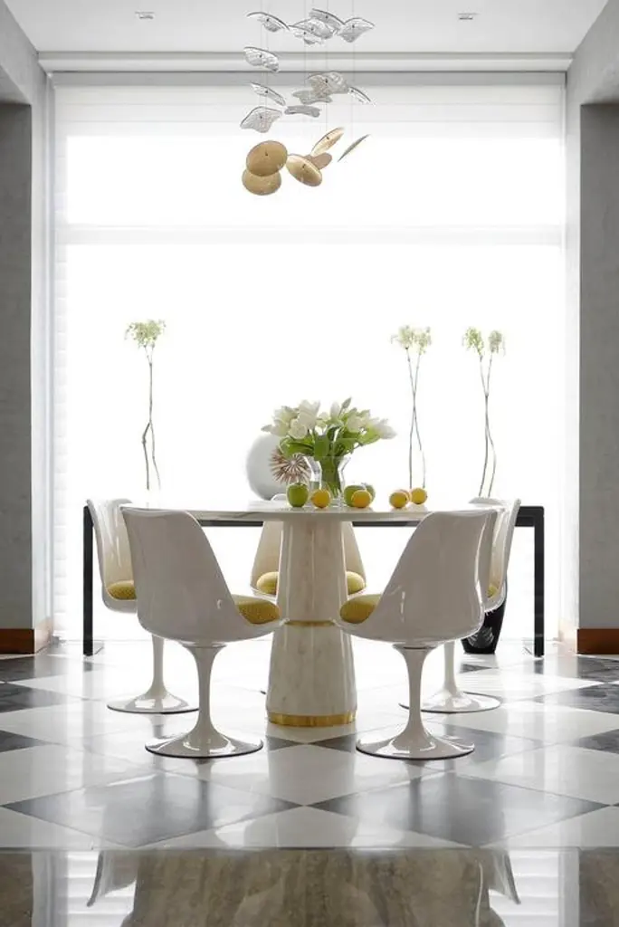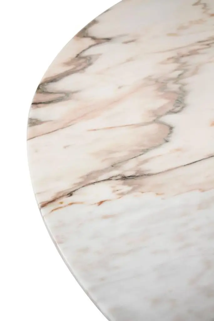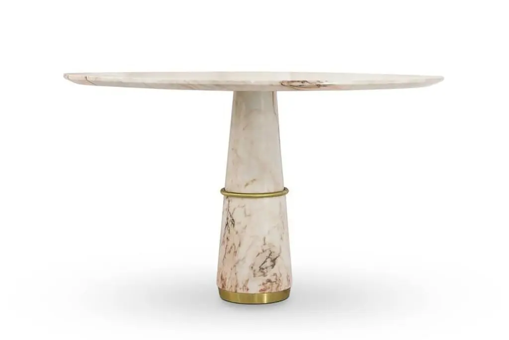 Tama Dining Table In White Marble Brass Details