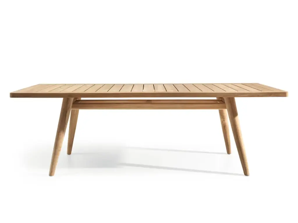 In a choice of 2 sizes, designer David Irwin’s alfresco Tanso range adds a well-proportioned rectangular dining table inspired by the simplicity of Japanese furniture. Robustly constructed in Grade A Teak with heightened attention to its subtle detail, it’s weather-resistant for outdoor use while also looking perfectly at home in an indoor environment.