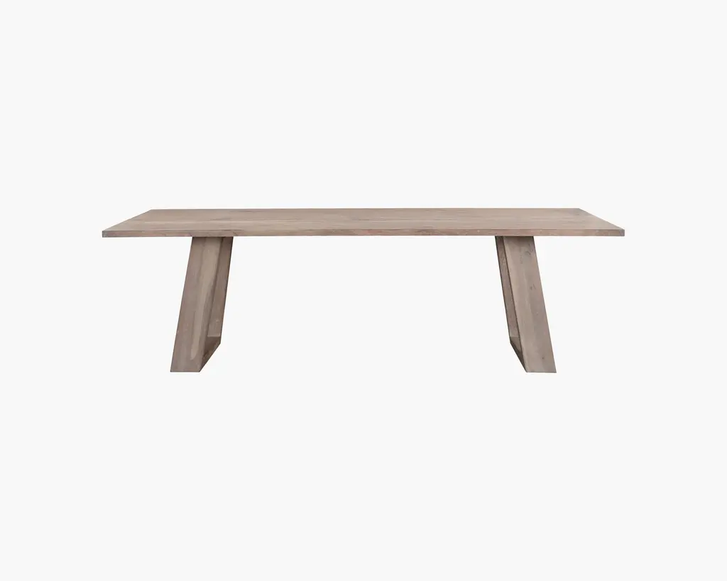 Wholeheartedly Scandi-chic, the Tanya dining table is here to bring us all together with its 8-person seating. Made from solid acacia wood with a whitewash finish, the Tanya dining table is simply classic design with an airy base and long tabletop. Brightened up sweetly with its light acacia wood finish, the natural wood grain patterning fits gently into any décor styles and large spaces. Set it best with the Tanya bench for a beautifully soft seating design.