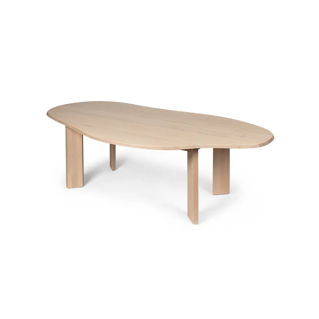 Bridging the gap between sculpture and furniture design, the Ferm Living Tarn Dining Table brings warmth and creative elegance into your home. The design pairs an organic top that features an asymmetrical shape with wide, plank-like legs placed in an angled position. A beveled edge adds a refined touch to the tabletop, highlighting Tarn’s exquisite craftsmanship. Made from solid, FSC-certified beech wood, this modern dining table comes in light or dark finishes. The quality build ensures longevity, transforming this piece of furniture into the centerpiece of your kitchen or dining area for many years to come. A smaller version of this design is also available.