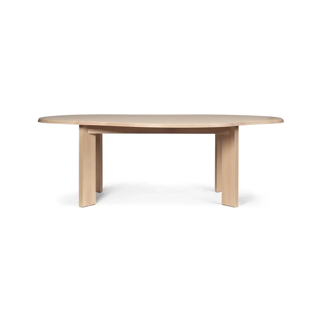Create a casual or fine dining experience with the Tarn Dining Table from Ferm Living. Made from solid, FSC™ certified beech wood, this table boasts a fluid and organic shape, highlighted by a beveled edge and striking linear legs. Pair with comfortable and supportive chairs in solid wood or wrapped in plush upholstery for a cozy spot to dine and relax. Highlights