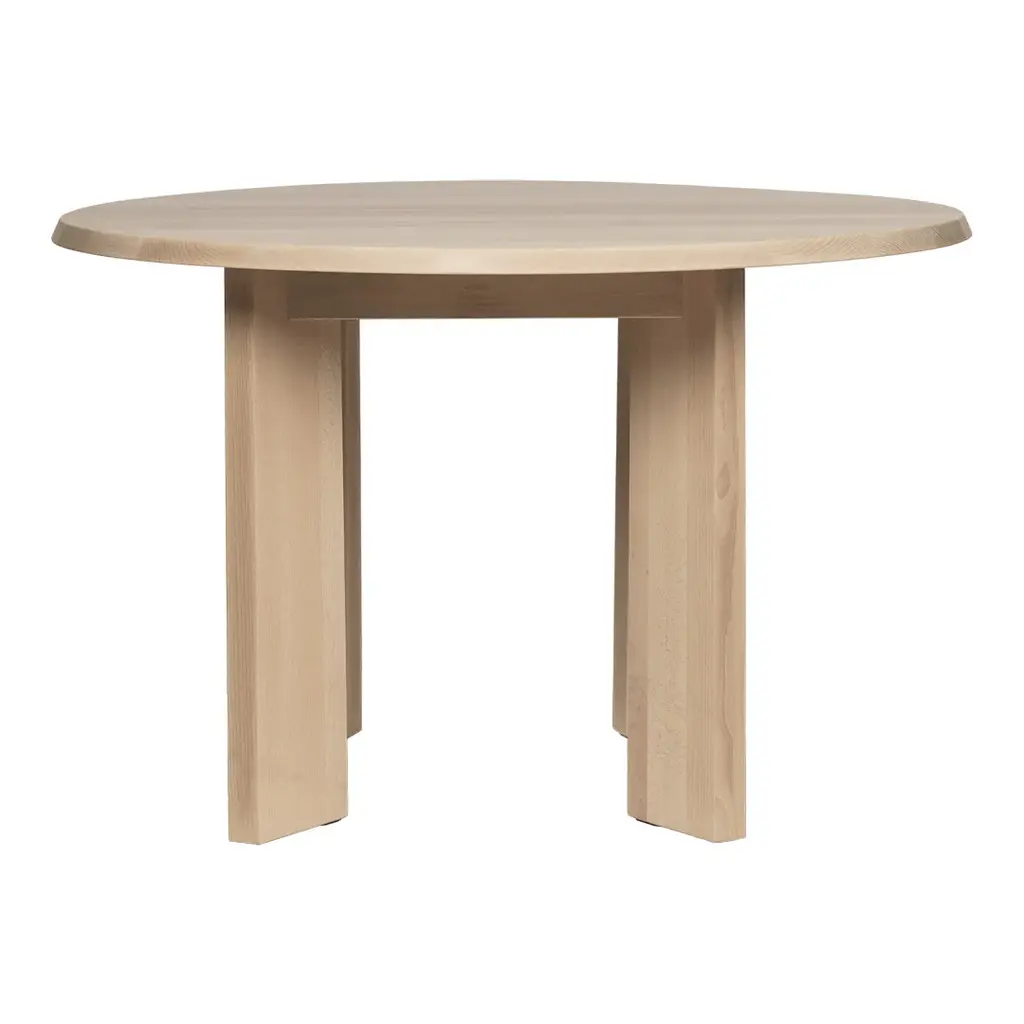 The Tarn Dining Table is meticulously crafted from solid, FSC certified beech wood. The table showcases a fluid and organic shape, beautifully contrasted by a beveled edge and four broad, linear legs, creating a visually striking piece. Perfect for your dining area or kitchen, it effortlessly sets a warm and cozy ambiance for your meals.