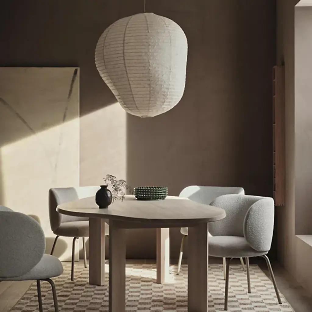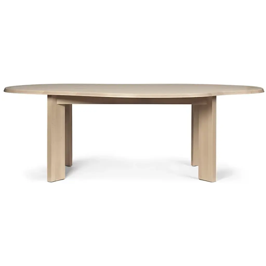 Crafted with meticulous attention to detail, the Tarn Dining Table by Ferm Living epitomizes exquisite craftsmanship. Its fluid and organic silhouette, highlighted by a beveled edge and four broad, linear legs, creates a visually captivating centerpiece. It is made from solid, FSC™ certified beech wood and exudes quality and sustainability. Whether adorning your dining area or kitchen, it effortlessly enhances any space with its warm and inviting ambiance, elevating meal times with its refined charm and timeless allure.