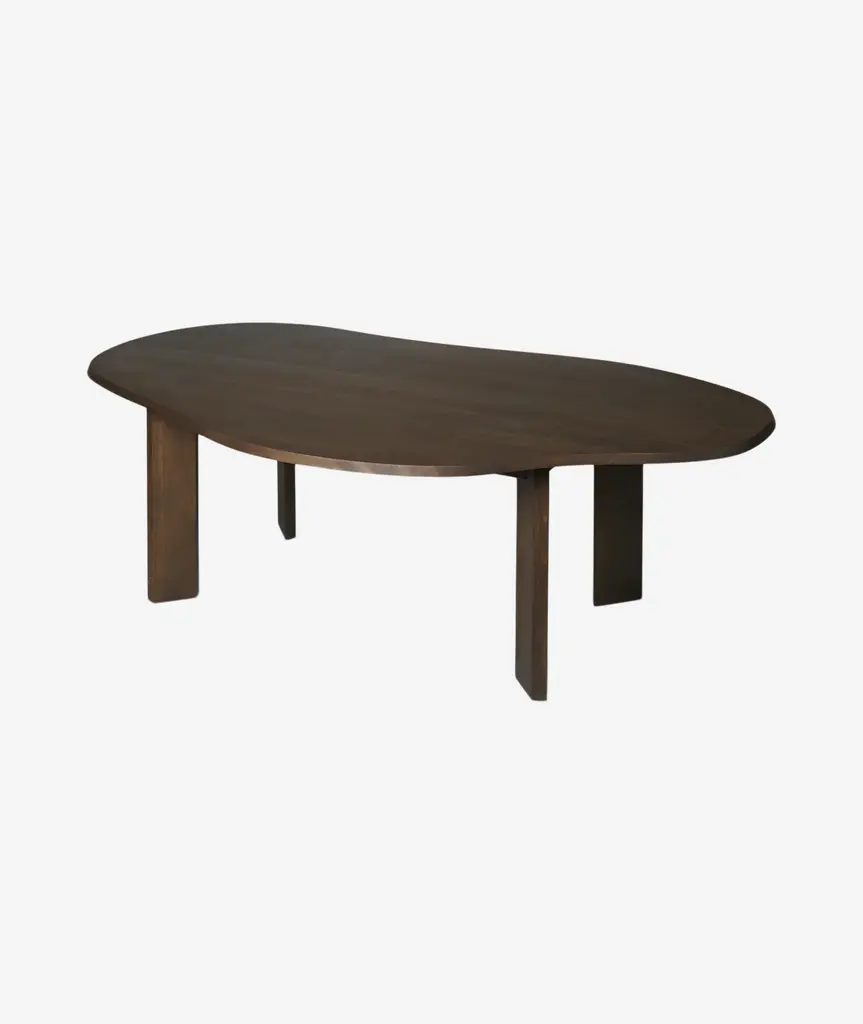 The Tarn Dining Table is meticulously crafted from solid, FSC™ certified beech wood. The table showcases a fluid and organic shape, beautifully contrasted by a beveled edge and four broad, linear legs, creating a visually striking piece. Perfect for your dining area or kitchen, it effortlessly sets a warm and cozy ambiance for your meals.