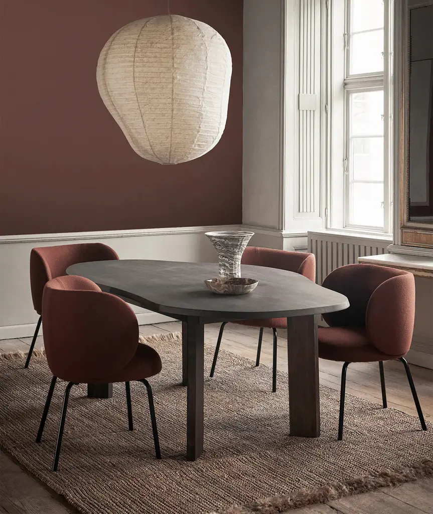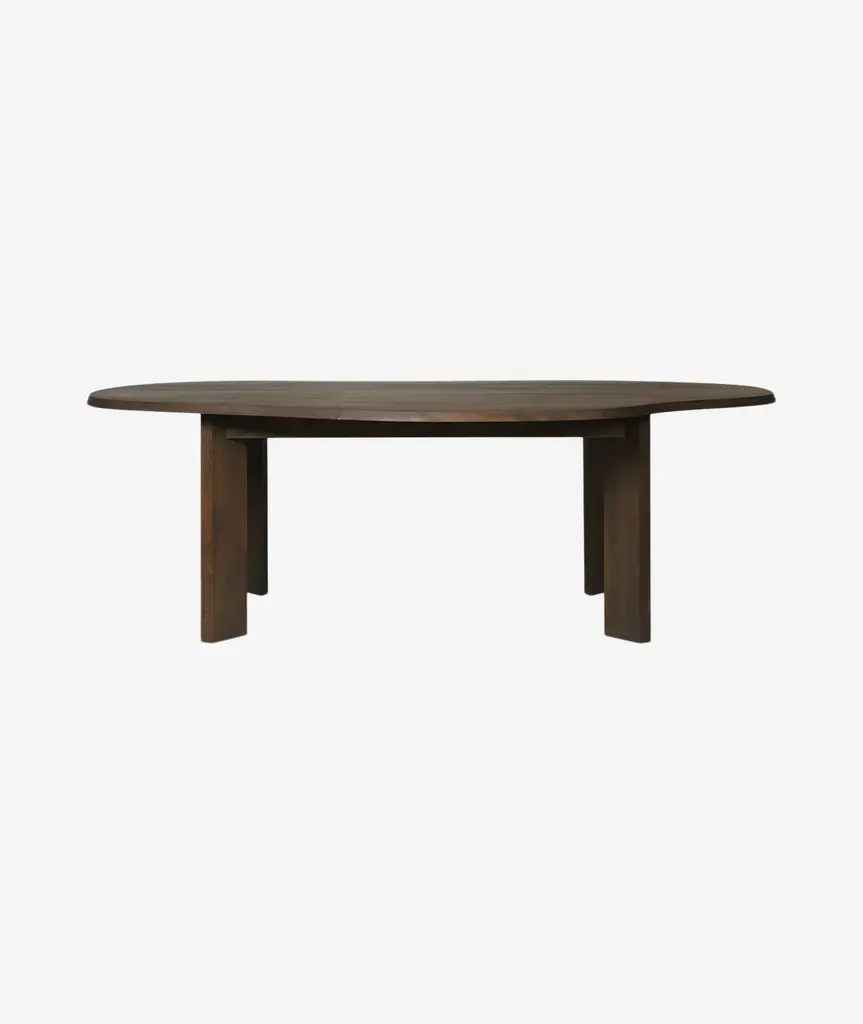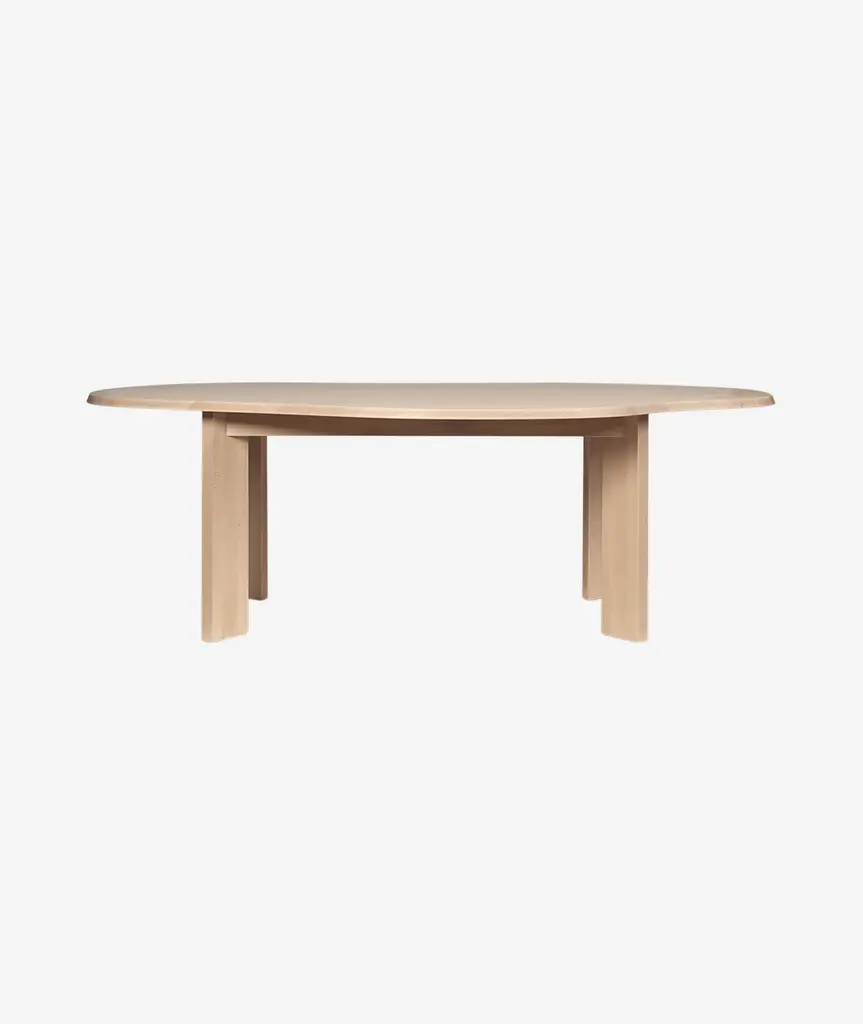The Tarn Dining Table is meticulously crafted from solid, FSC™ certified beech wood. The table showcases a fluid and organic shape, beautifully contrasted by a beveled edge and four broad, linear legs, creating a visually striking piece. Perfect for your dining area or kitchen, it effortlessly sets a warm and cozy ambiance for your meals.