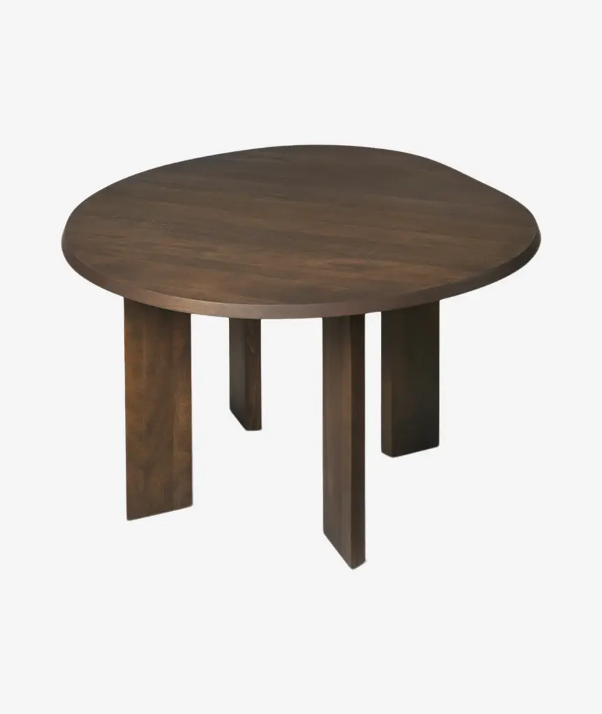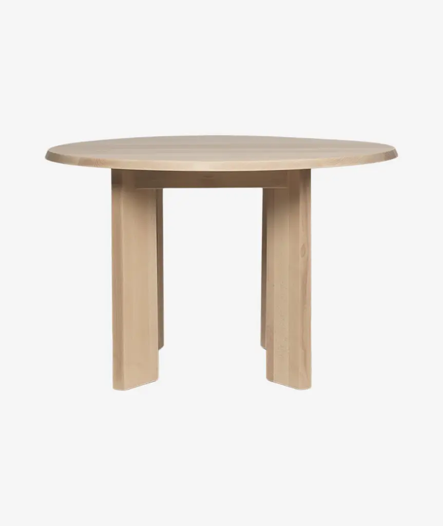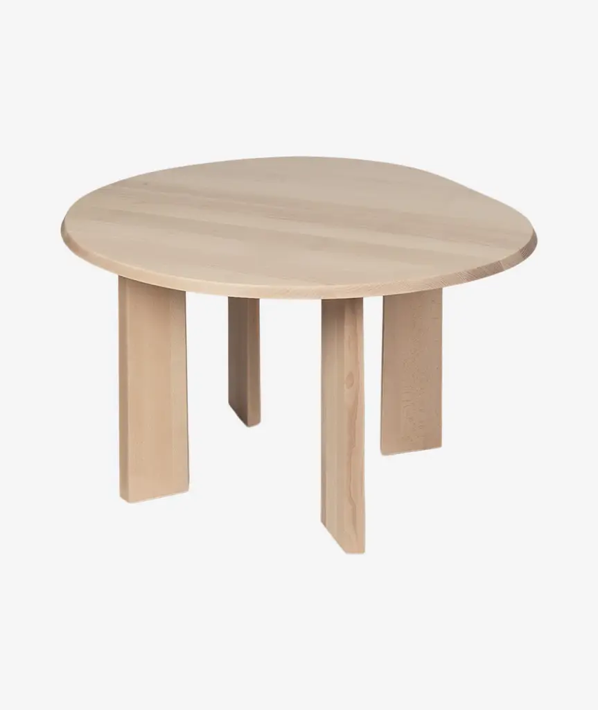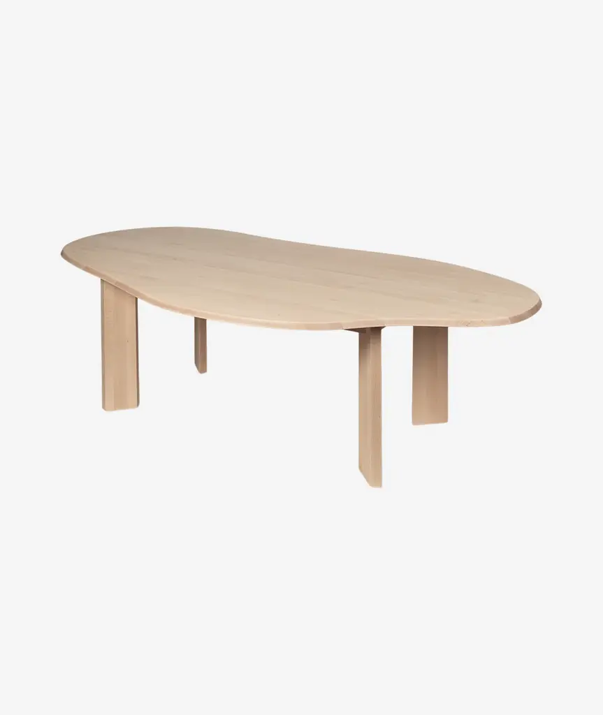 The Tarn Dining Table is meticulously crafted from solid, FSC™ certified beech wood. The table showcases a fluid and organic shape, beautifully contrasted by a beveled edge and four broad, linear legs, creating a visually striking piece. Perfect for your dining area or kitchen, it effortlessly sets a warm and cozy ambiance for your meals.