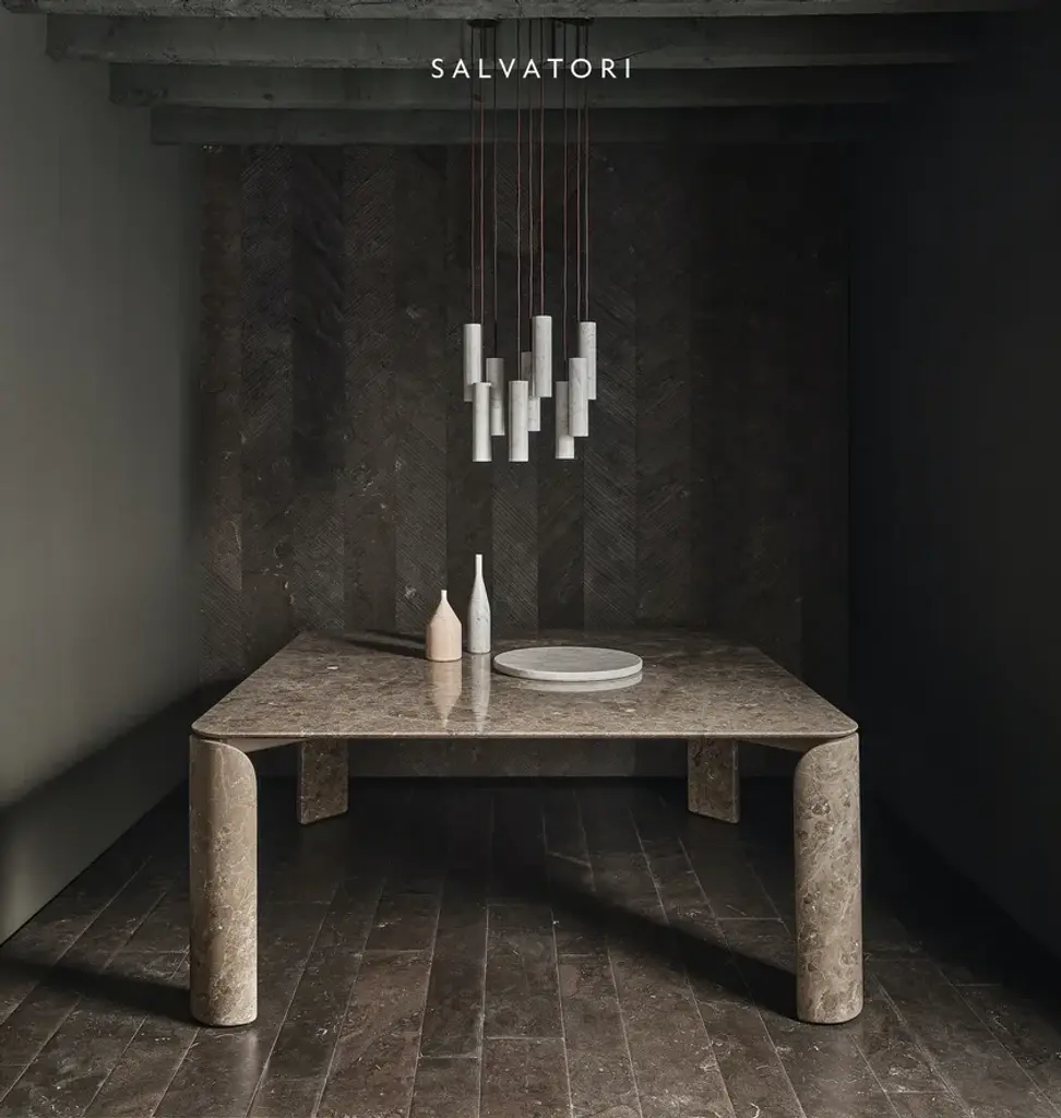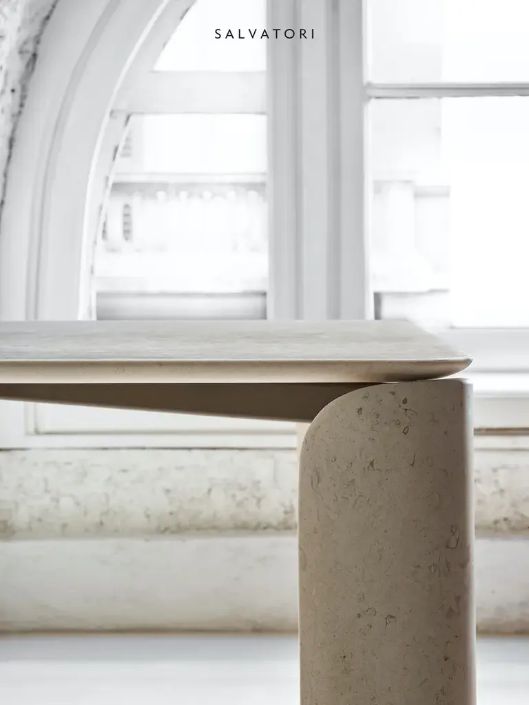 The Taula table collection was inspired by the imposing monolithic structures of the same name that are found on the Mediterranean islands of Menorca and Mallorca. Designer Patricia Urquiola has reinterpreted their ancestral might and mysticism in a series of innovative dining tables that exalt the tactility of natural stone.The soft sinuous forms of marble and limestone combine with an ingenious metal support system that creates the effect of a top that seems to float above the legs. This optical illusion, the result of meticulous research conducted by our team into form and perspective, defies our normal perception of stone as a solid, heavy material, making it appear unexpectedly light.The result is a series of six striking and original dining tables, with rectangular variants in Crema d’Orcia, Pietra d’Avola and a combination of Bianco Carrara with legs in sandblasted Pietra d’Avola, and in a square shape in Bianco Carrara, Gris du Marais® and Bianco Carrara paired with sandblasted Verde Alpi.This dining tables have been treated with a neutral sealer which not only helps protects it from staining, but also ensures it is suitable for use with food.Please be aware however, that natural stone will always retain some level of absorption and therefore products with a high acid, fat or oil content should never be placed on it.Any liquids should be wiped off as quickly as possible.