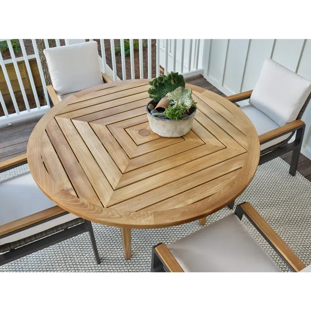 Enjoying a classic appeal, the Coretta round dining table provides the perfect backdrop for outdoor dining areas.