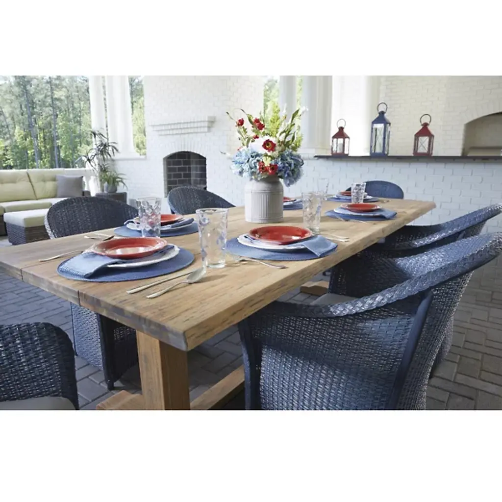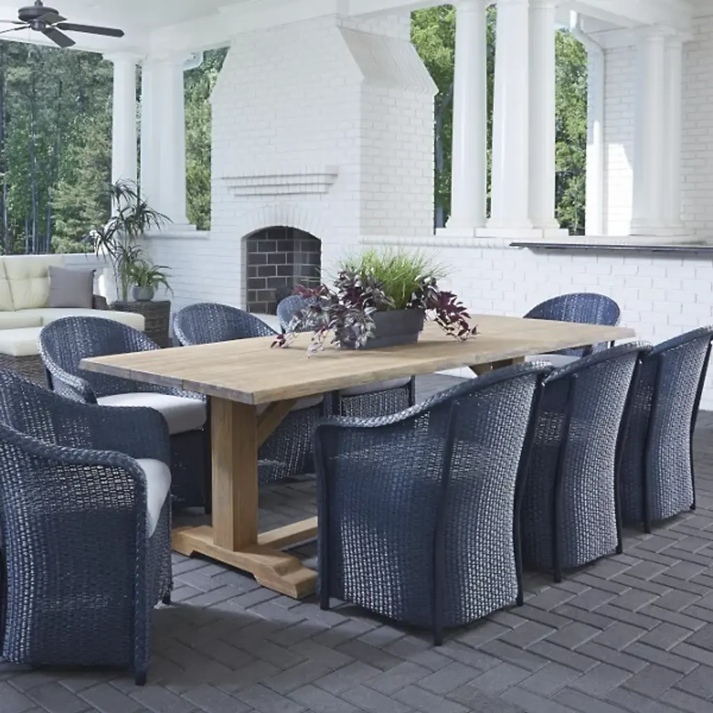The Teak Rectangular Outdoor Live Edge Dining Table by Lloyd Flanders brings natural beauty and lasting durability to any outdoor space. Crafted from sustainably sourced, FSC-certified Brazilian teak, it offers exceptional weather resistance with its high oil content, tight grain, and inherent strength. Designed to age gracefully, the teak develops a rich silver patina over time, with variations based on environmental conditions. A perfect blend of style and function, this eco-friendly table enhances outdoor dining with timeless elegance and practicality.