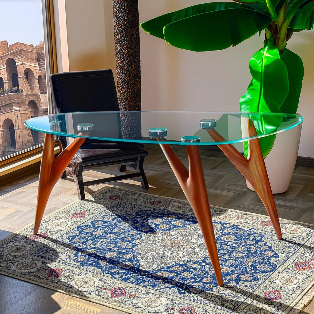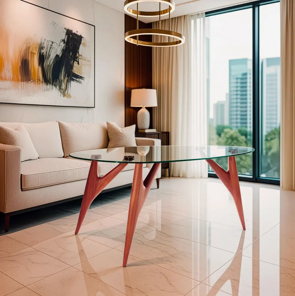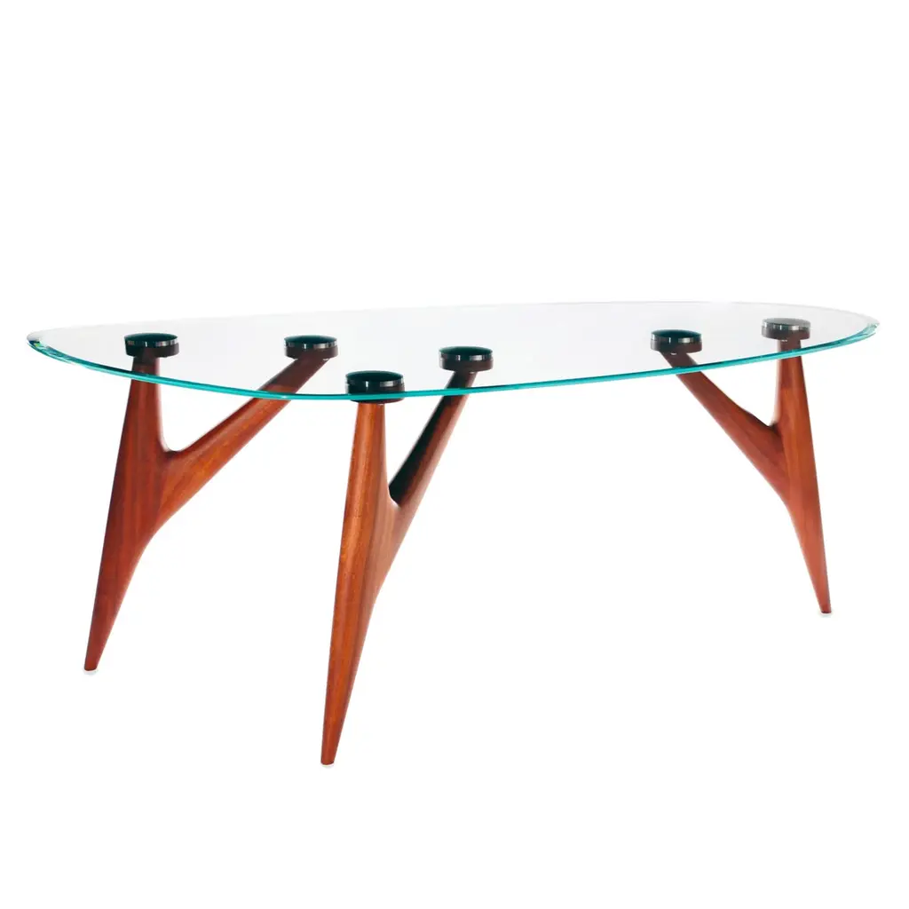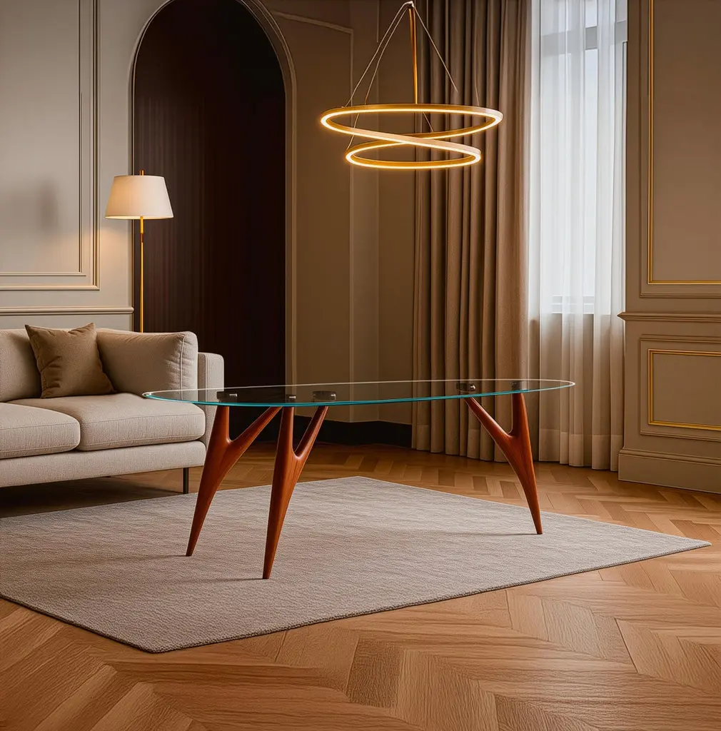 The Ted Crystal Dining Table by Greyge is a striking fusion of art and function, crafted for collectors of timeless design. Its sculptural base is hand-carved in solid Sapelli mahogany, a noble hardwood prized for its rich reddish tone and elegant grain, echoing the sculptural mastery of our acclaimed Ted series. The organic three-legged structure embodies balance and lightness, supporting a tempered crystal glass top that enhances transparency and spatial flow.Designed and handcrafted in Italy, this luxury dining table celebrates modernist inspirations with an avant-garde edge., While bespoke options in size, height, or proportions are available for exclusive interiors. The Ted Crystal is more than a dining table: it is a collectible centerpiece for refined contemporary living.