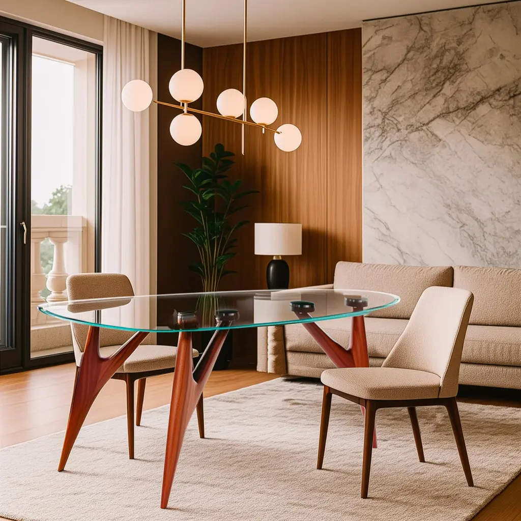Ted Crystal Dining Table - Solid Sapelli Mahogany Sculpted Base With Glass Top