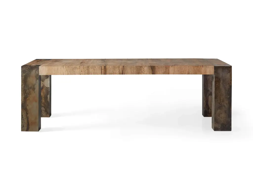 Deeply grained Mexican oak, from trees both reclaimed and sustainably harvested, is hand-lacquered by our artisan partners to highlight its every organic imperfection. Soon after, it’s joined with naturally oxidized steel, equal in character and distinction, to create the remarkable pieces of our Telluride Collection.